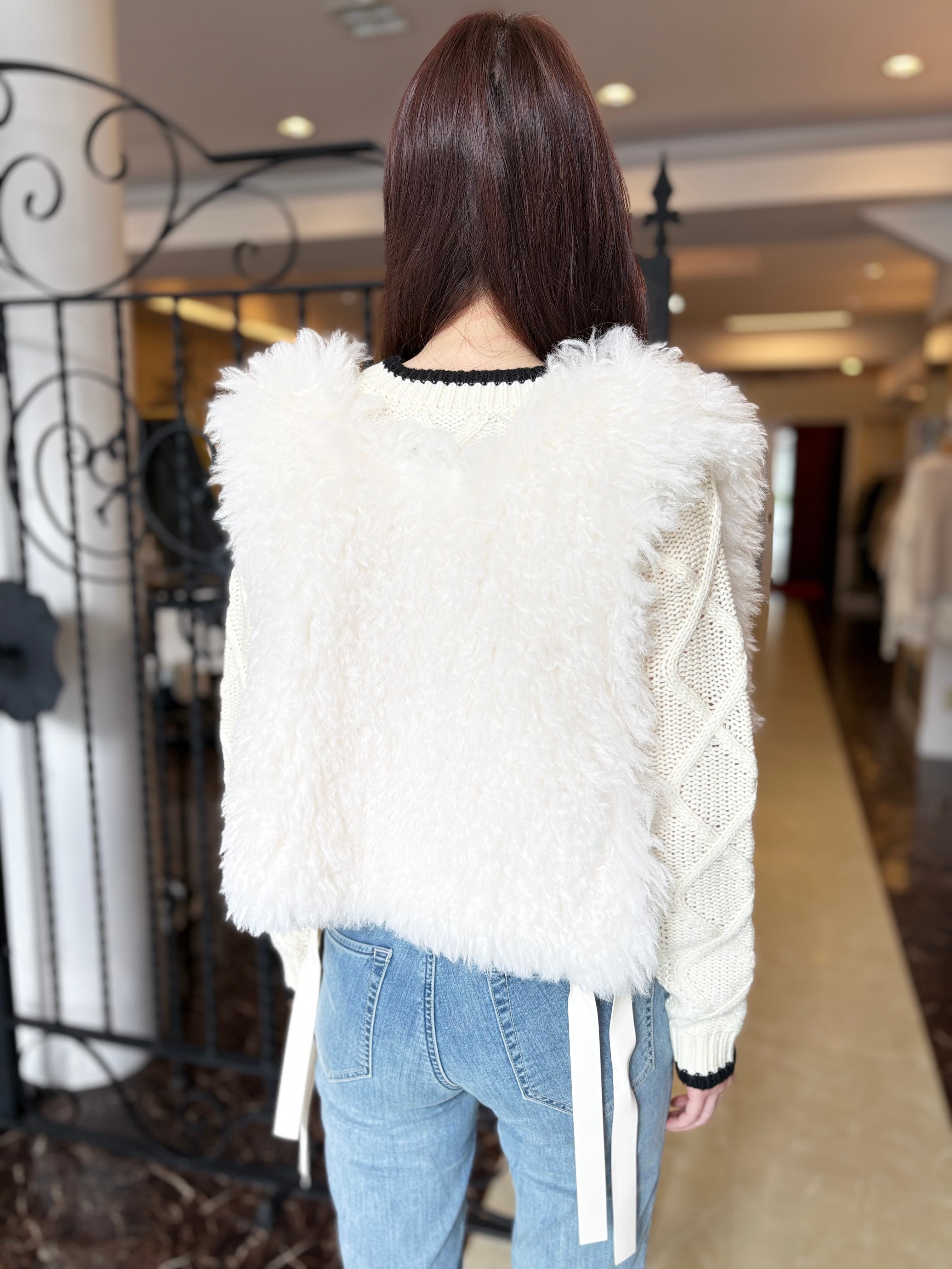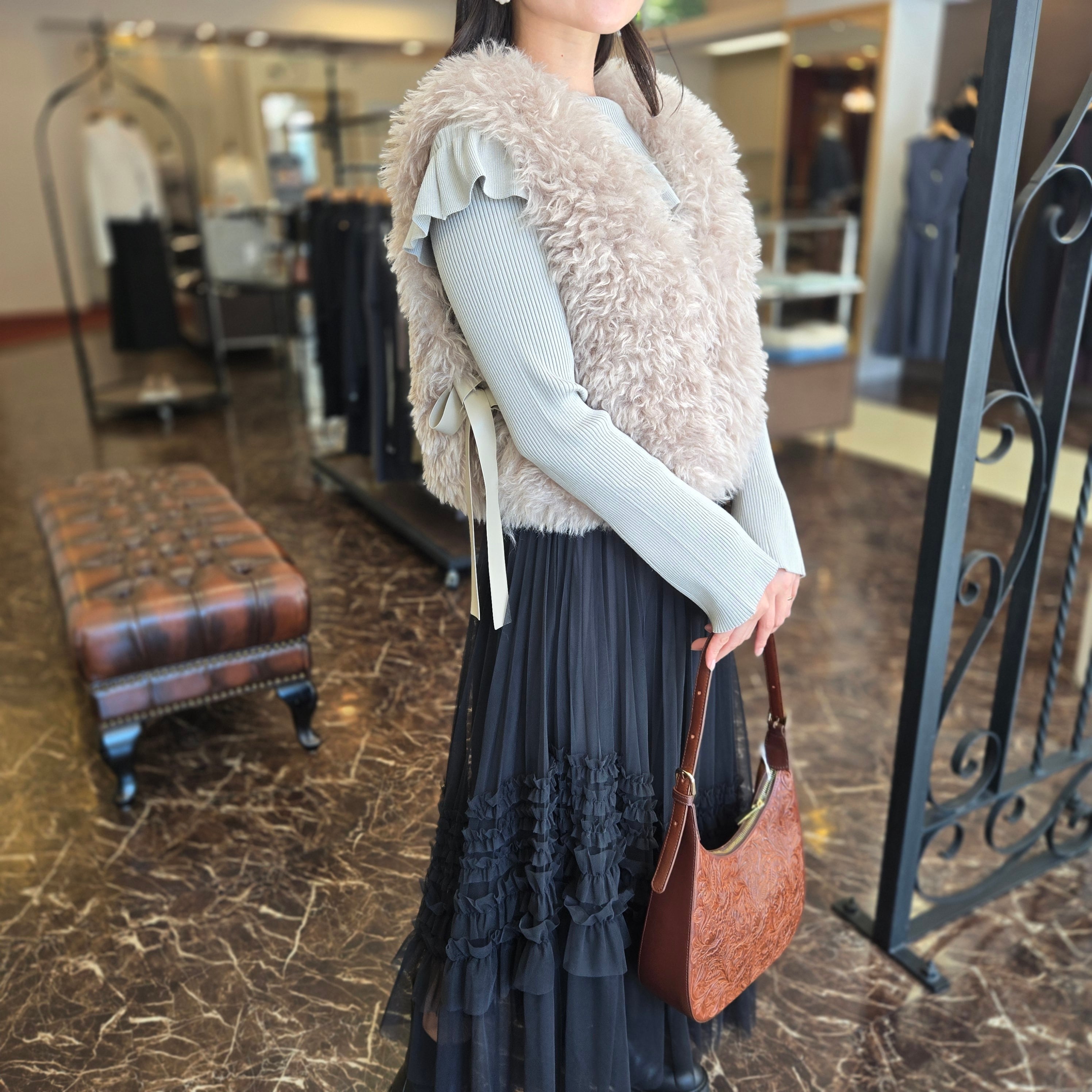 しなやかで柔らかい毛足が長めのトスカーナ風のフェイクファーを使用。