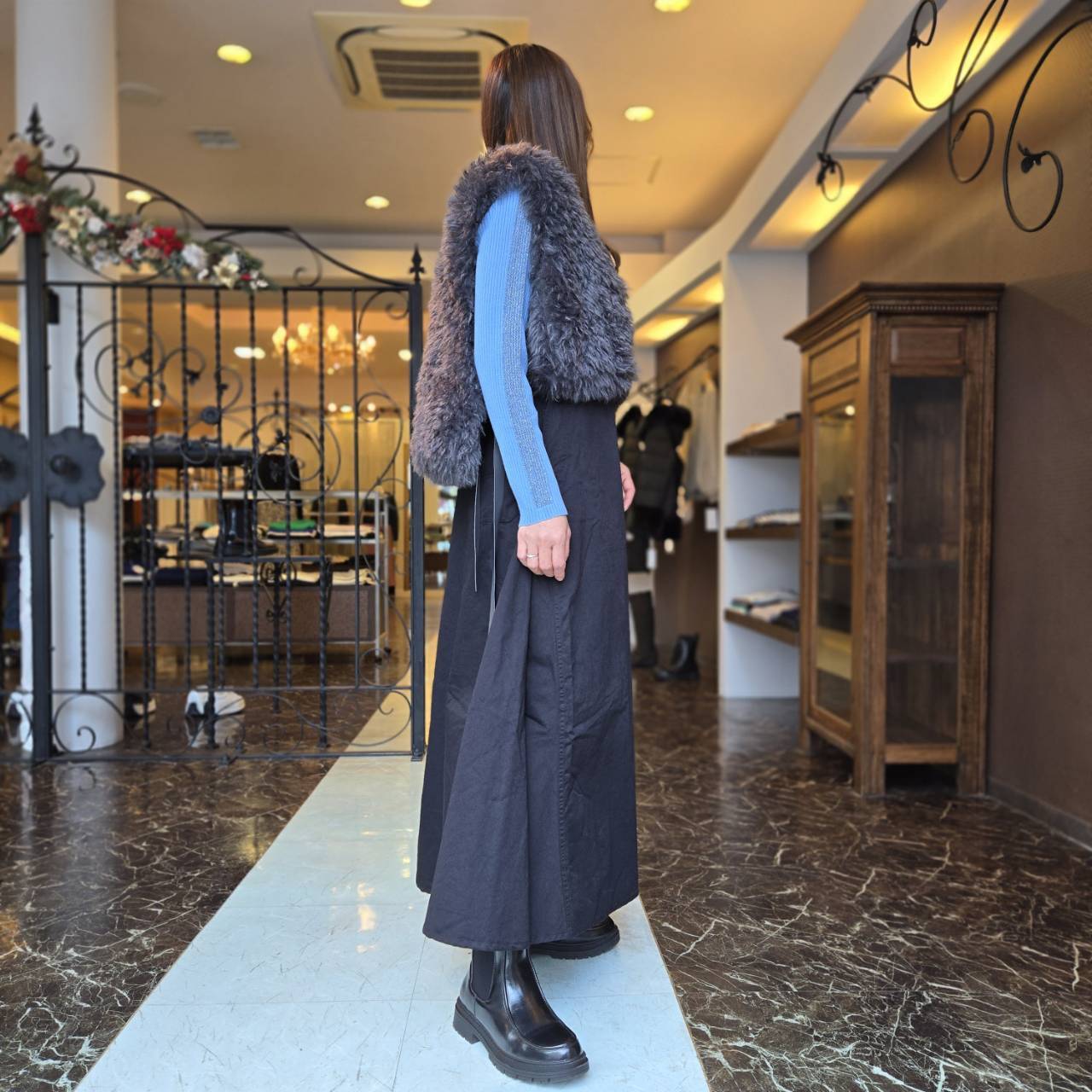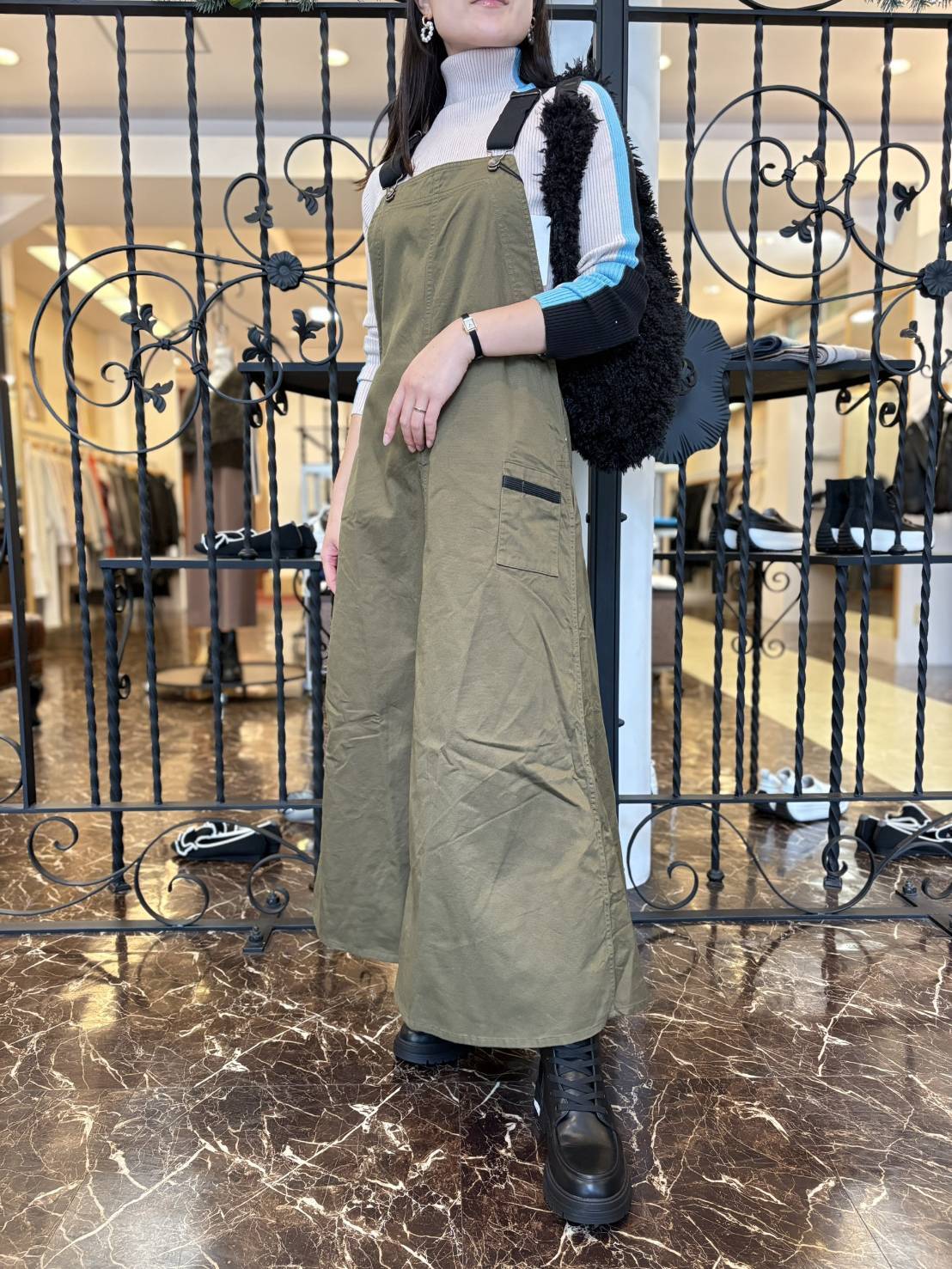 コンパクトなトップスと合わせることで、ゴージャスなシルエットが一層引き立つジャンパースカートです。