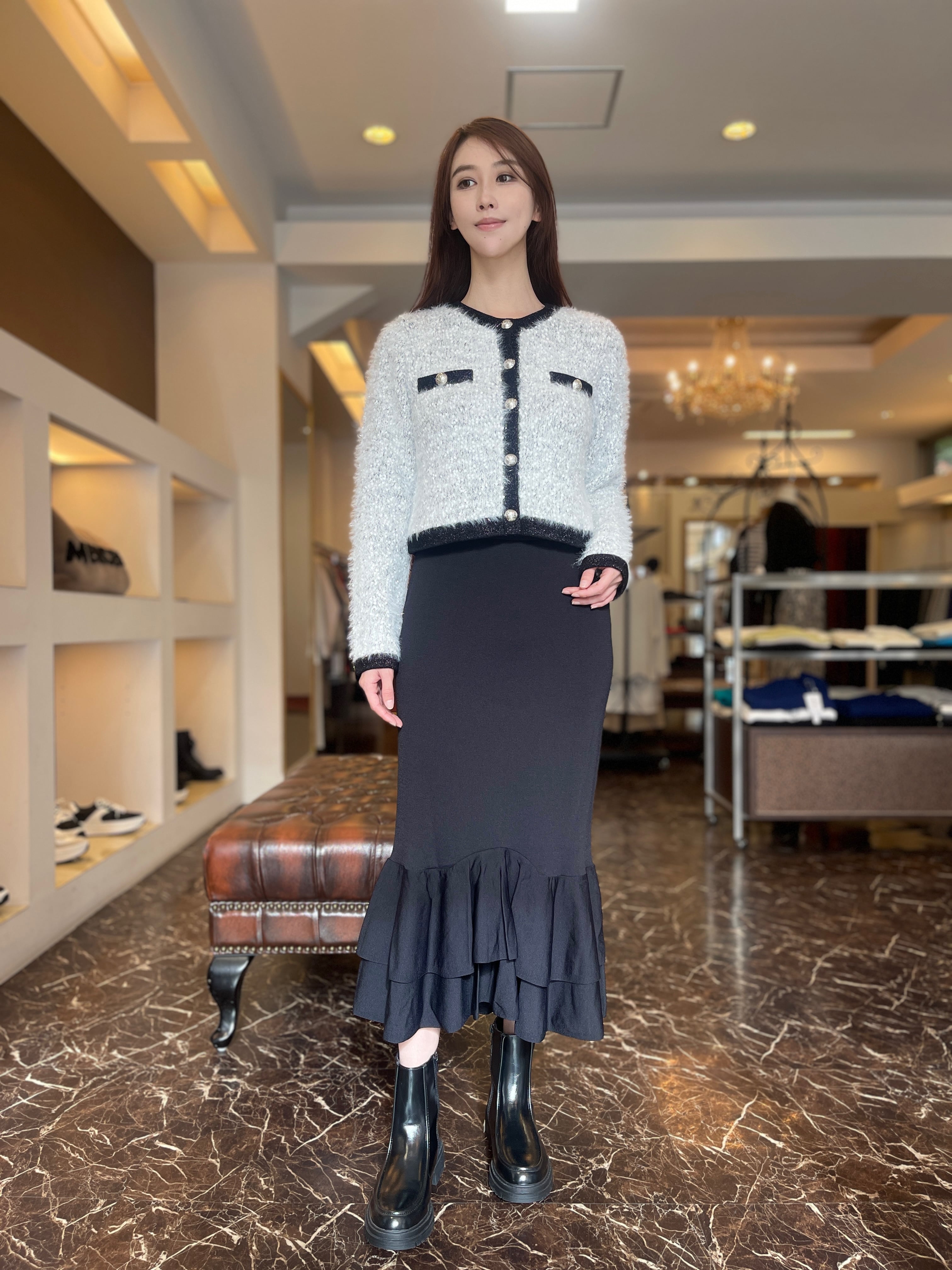シーズナブルな装いを楽しめるフェザーニットカーディガン。