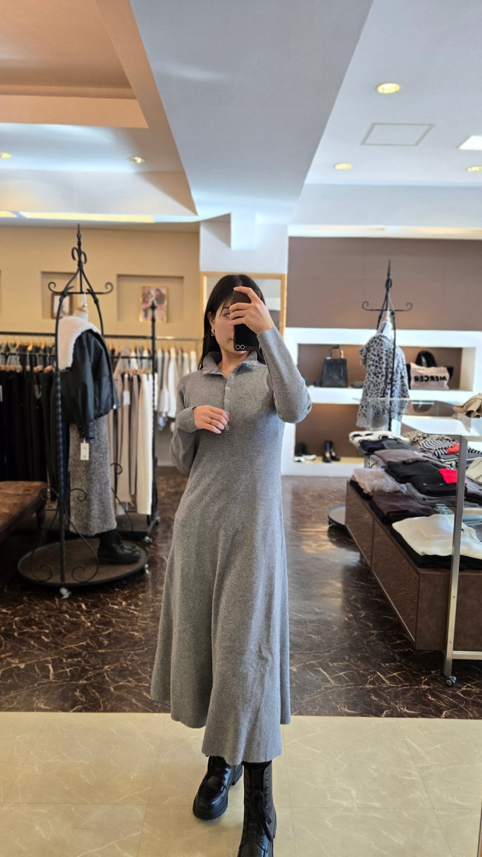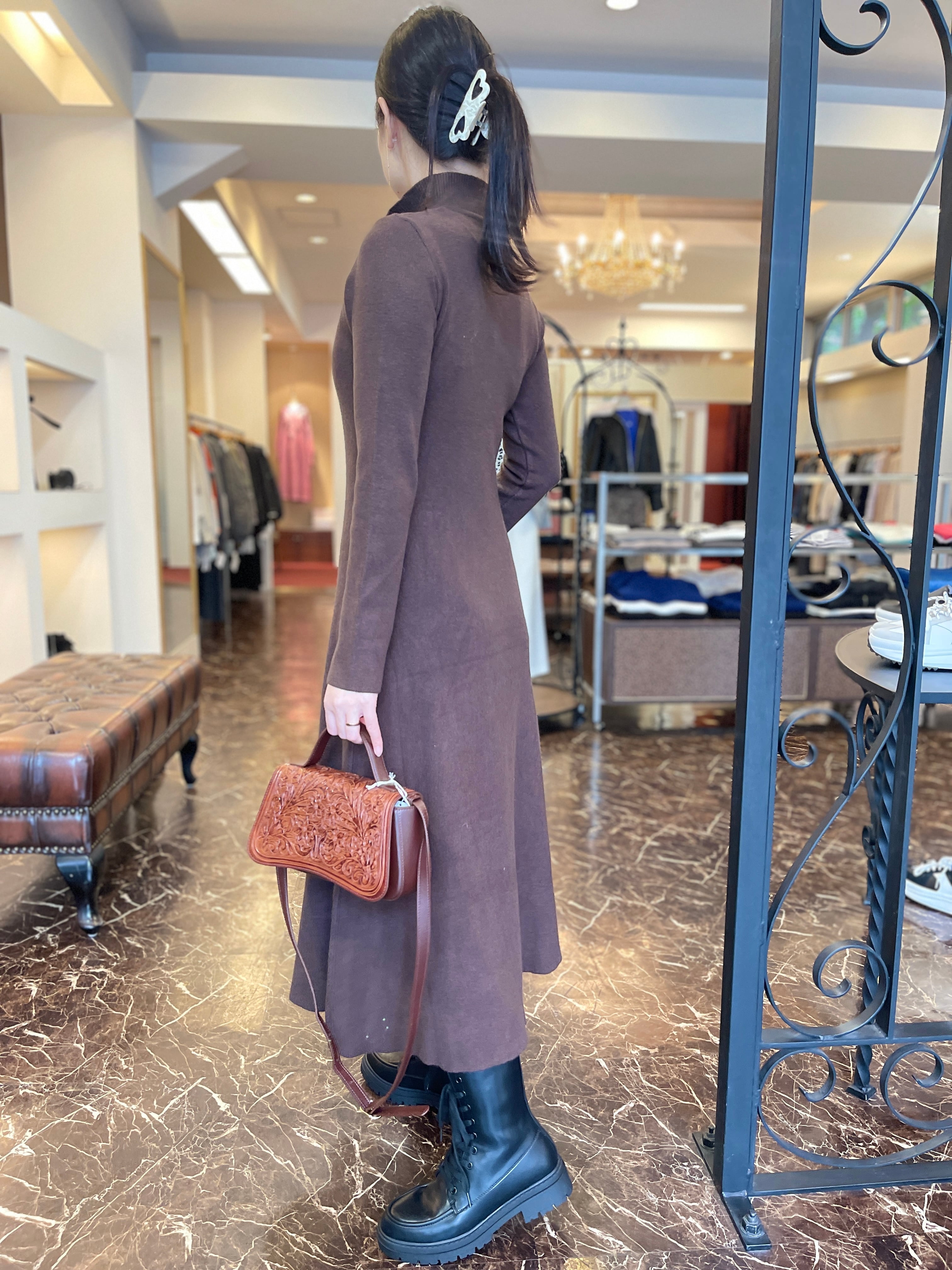 ハイネックリブフレアワンピース