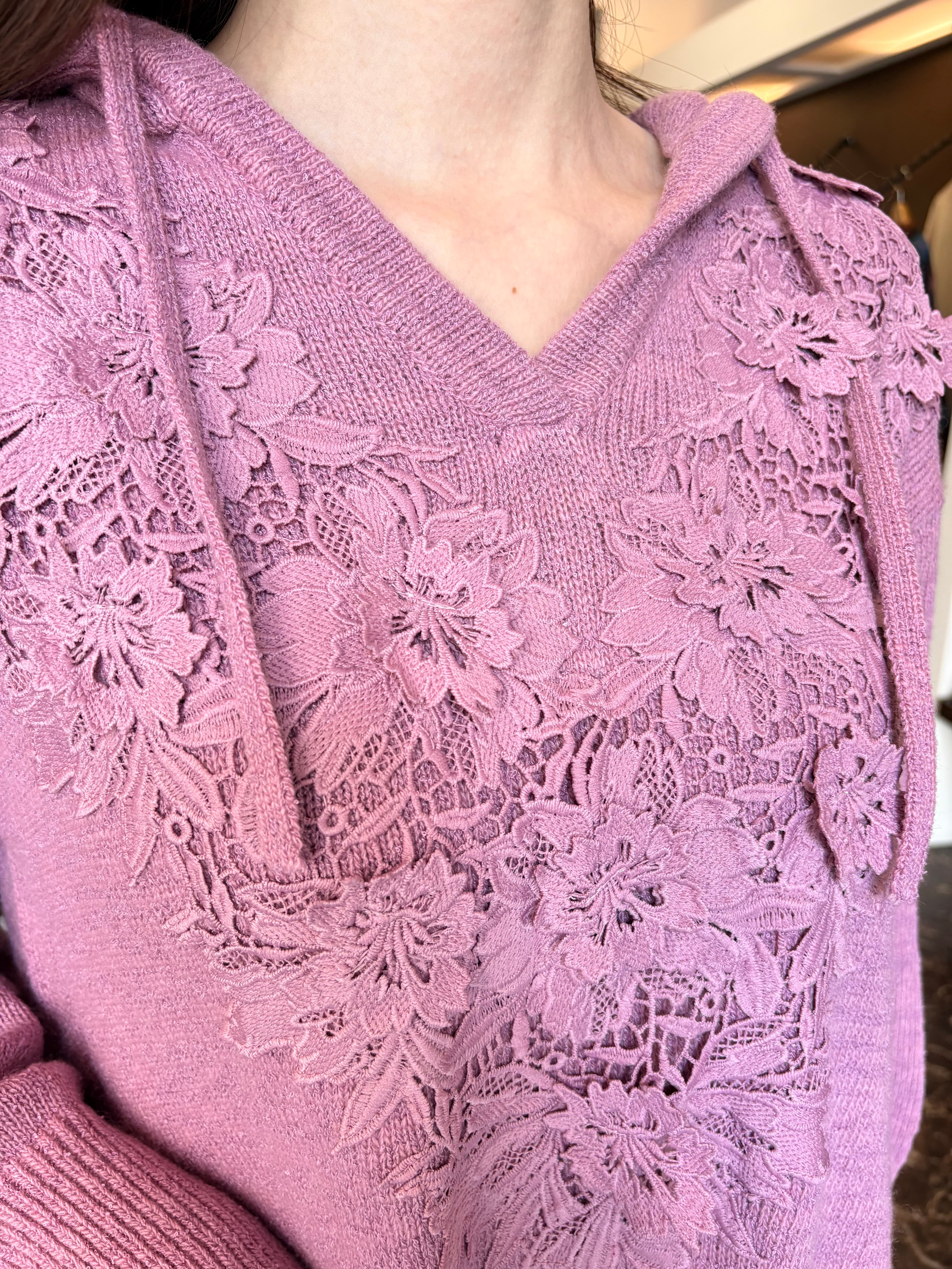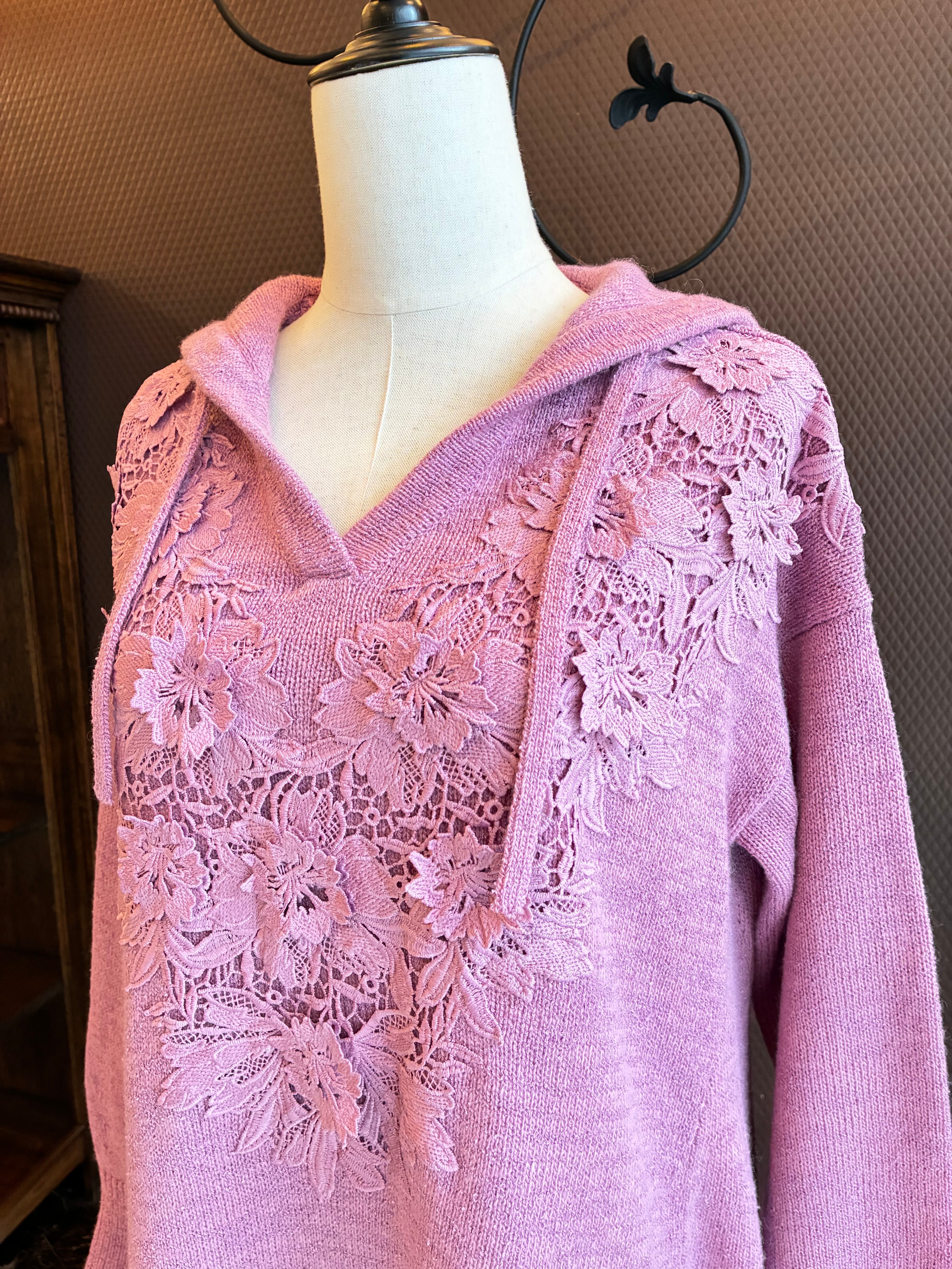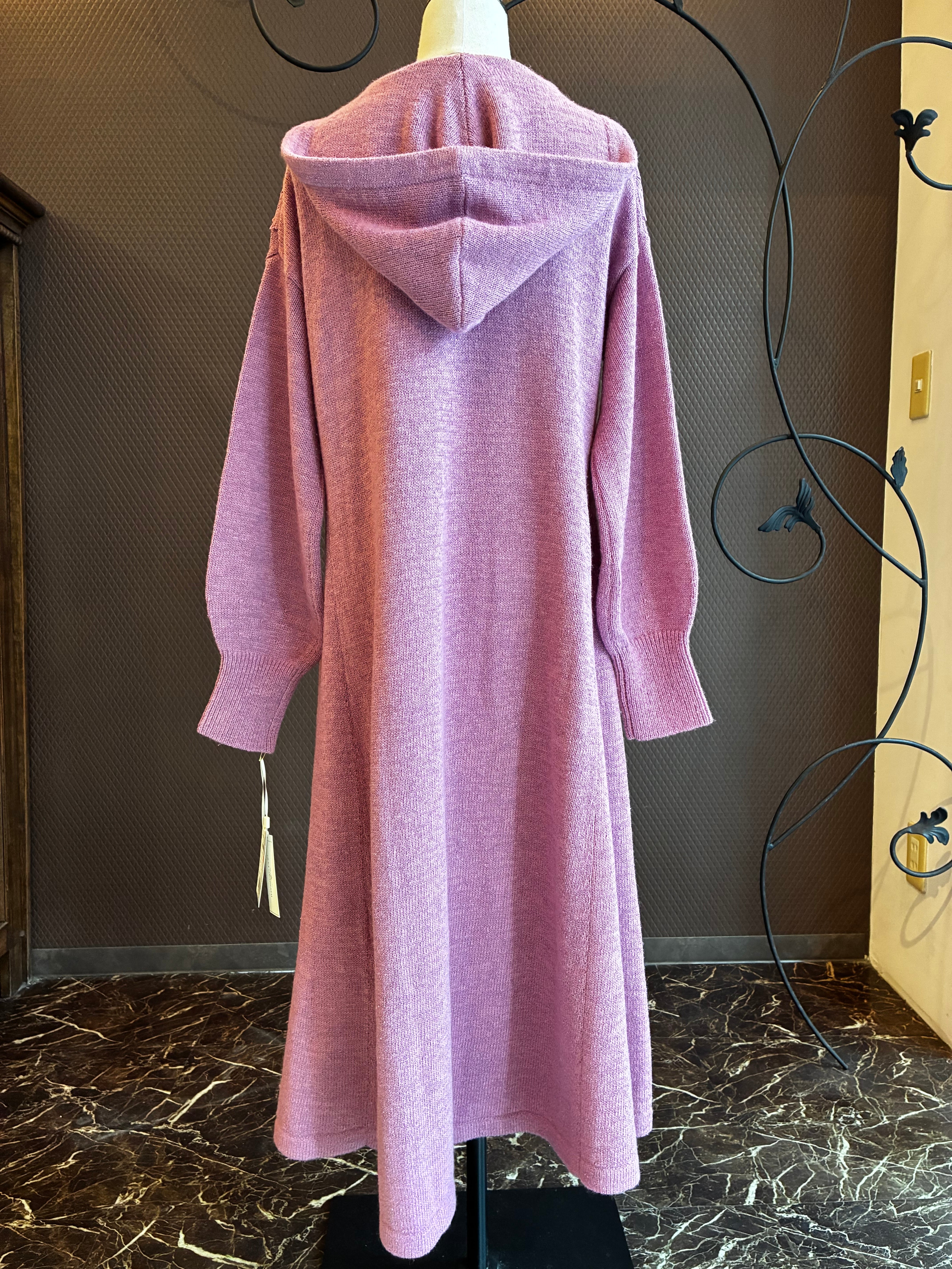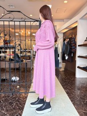 3Dの刺繍を施したケミカルレースがポイントのロング丈ニットワンピース。