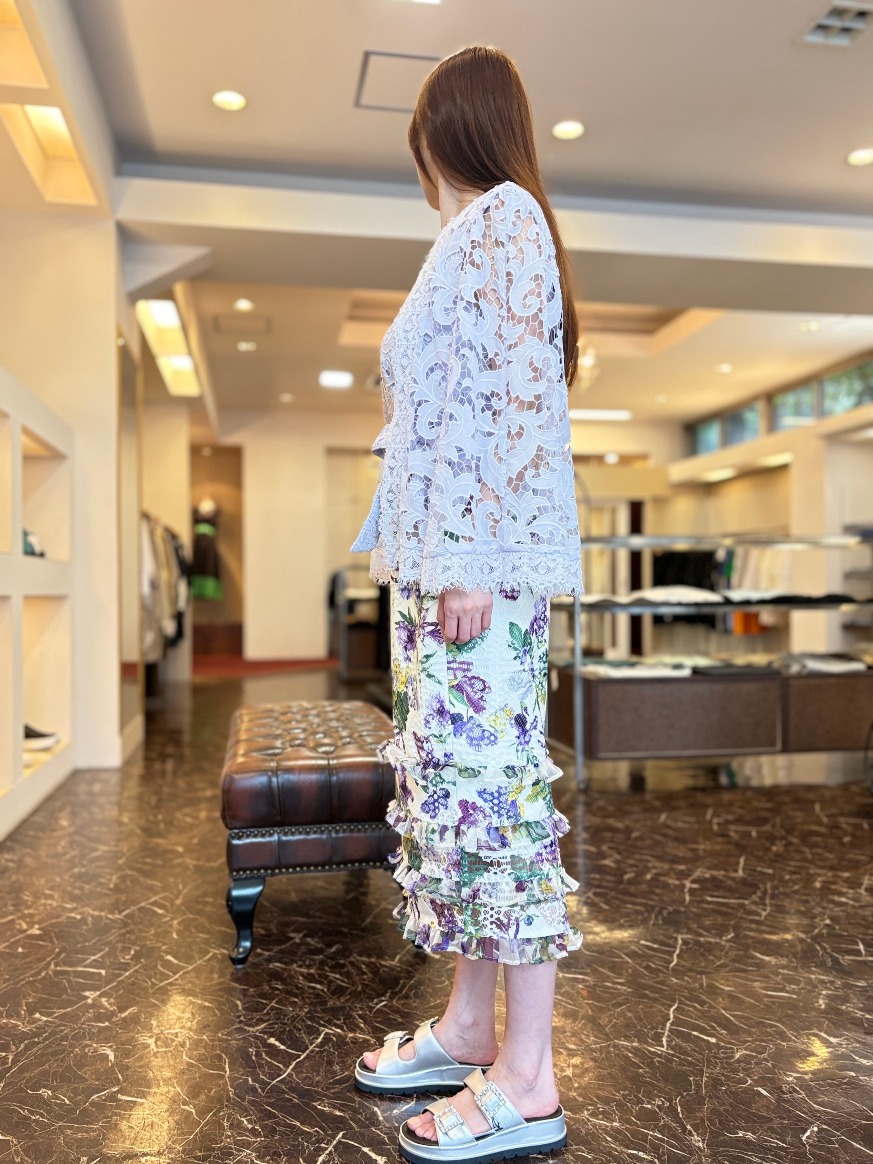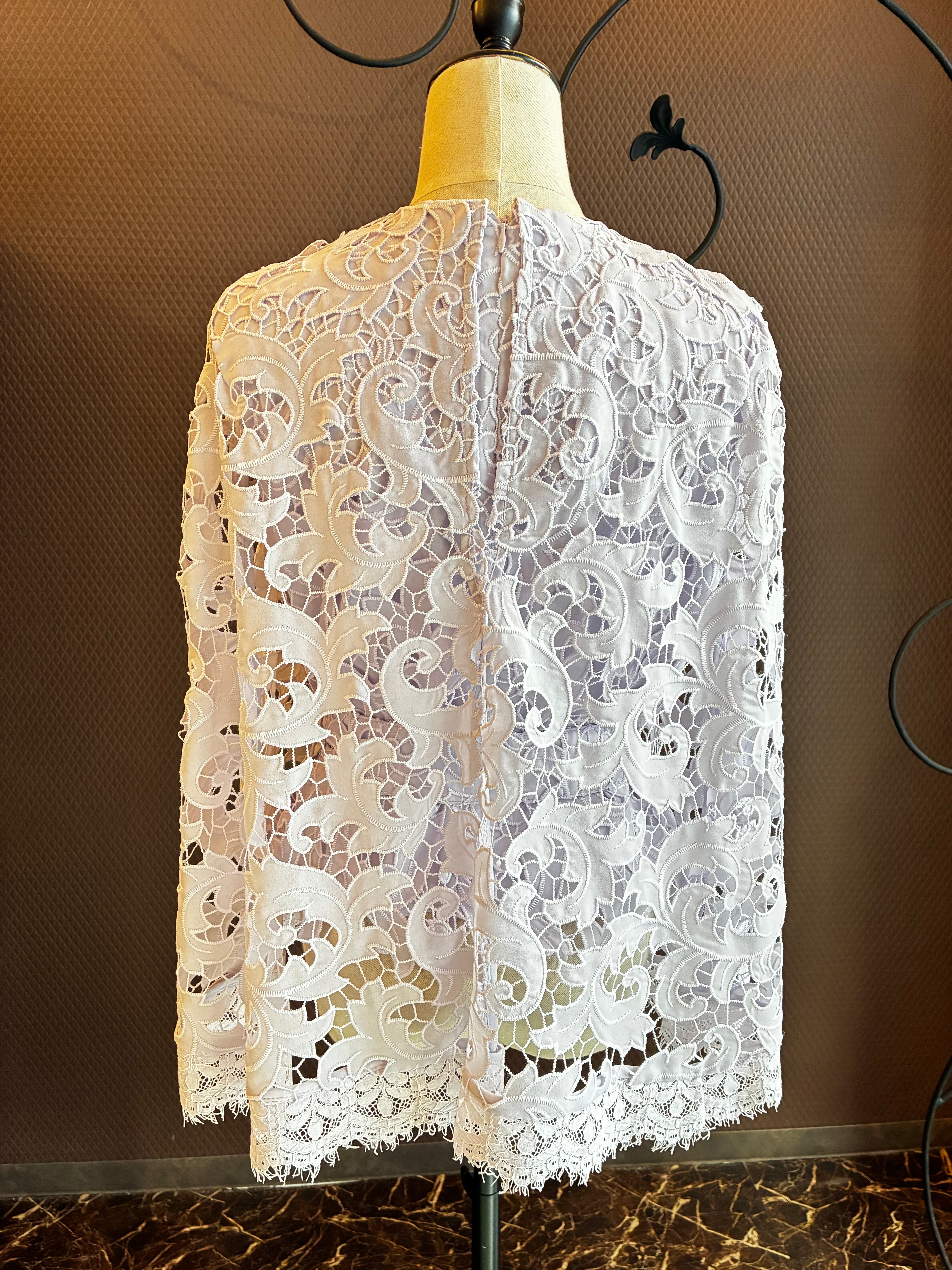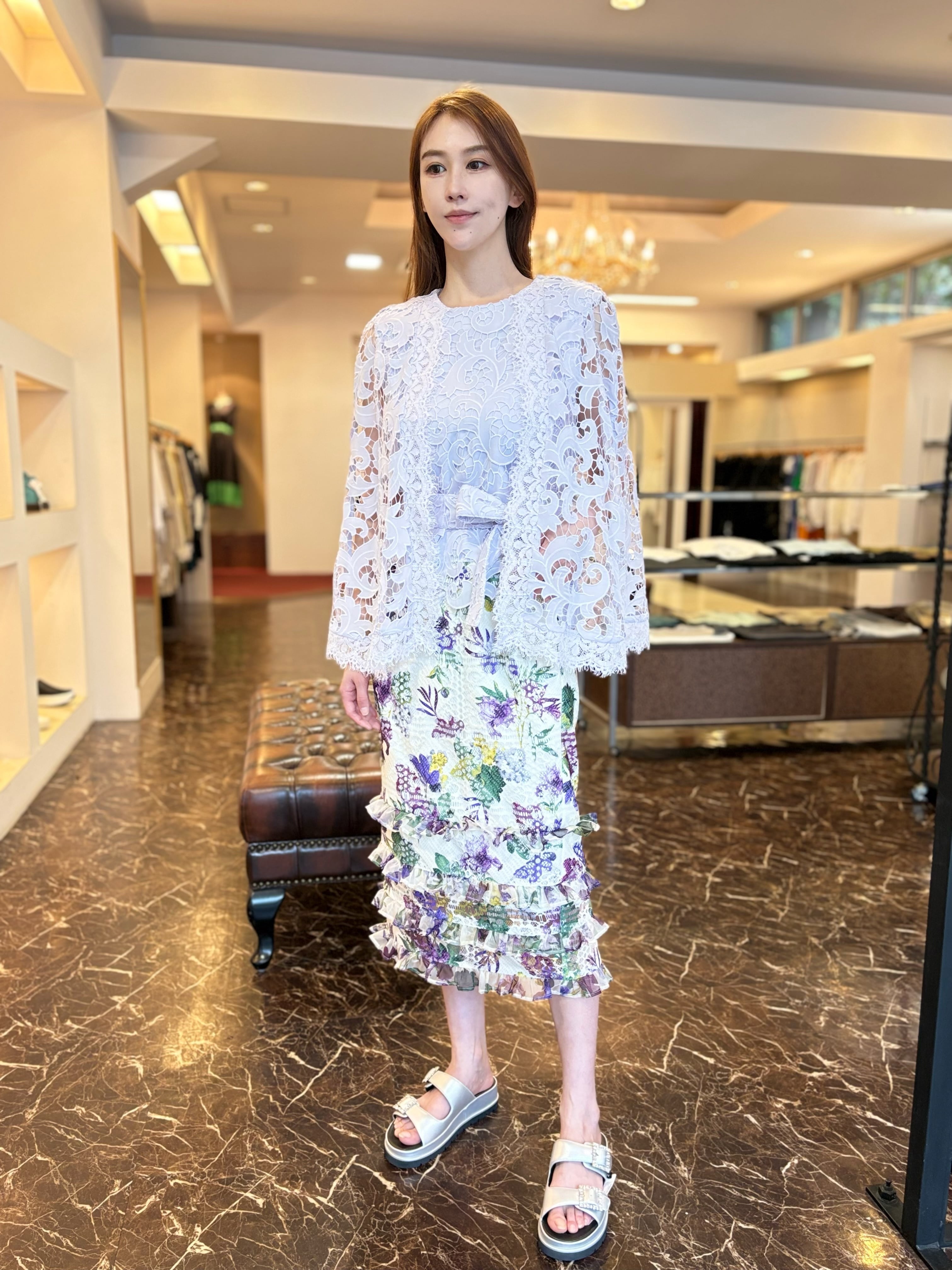 エンブロイダリーレースが美しい、エレガントな1着です。