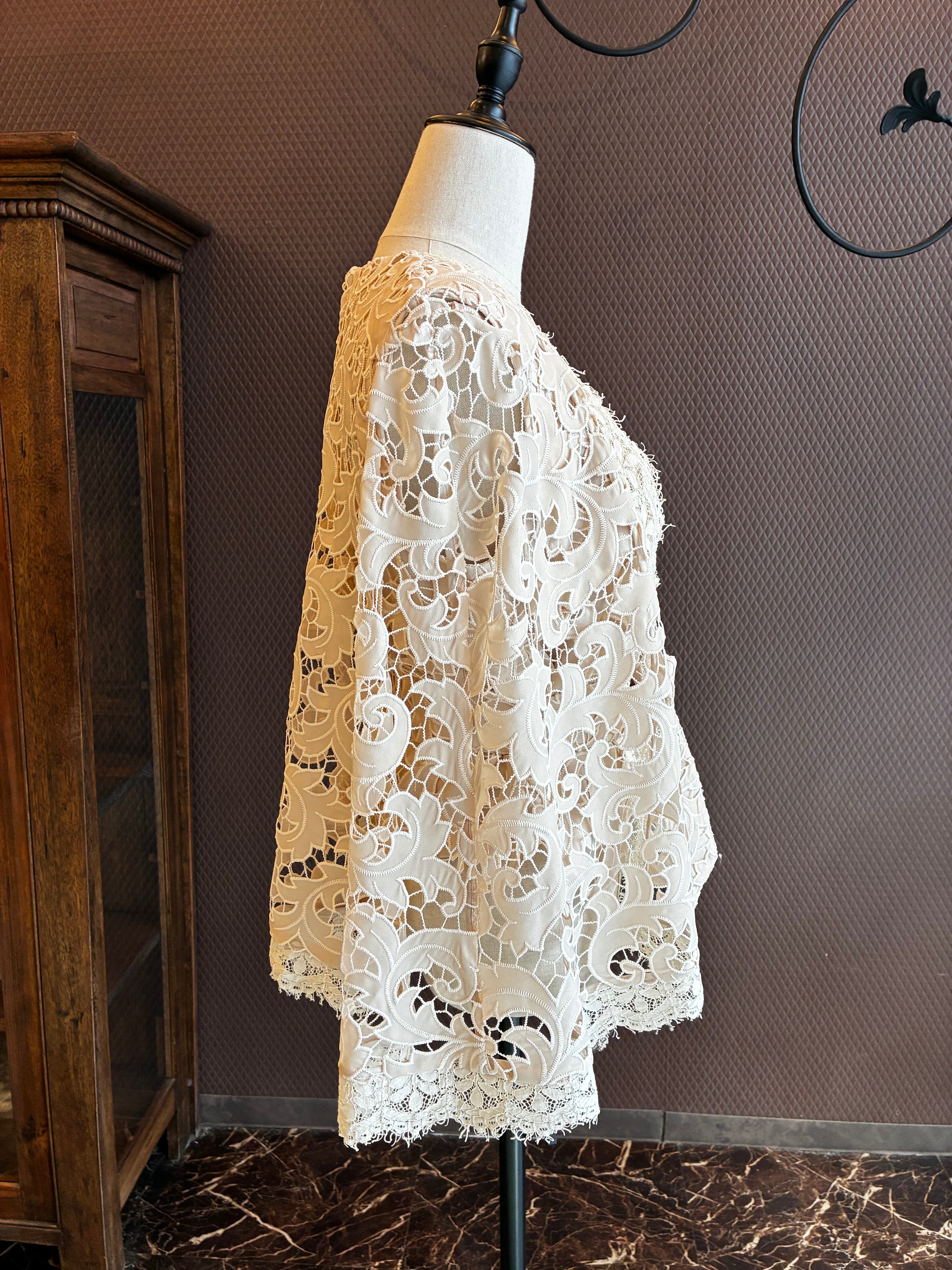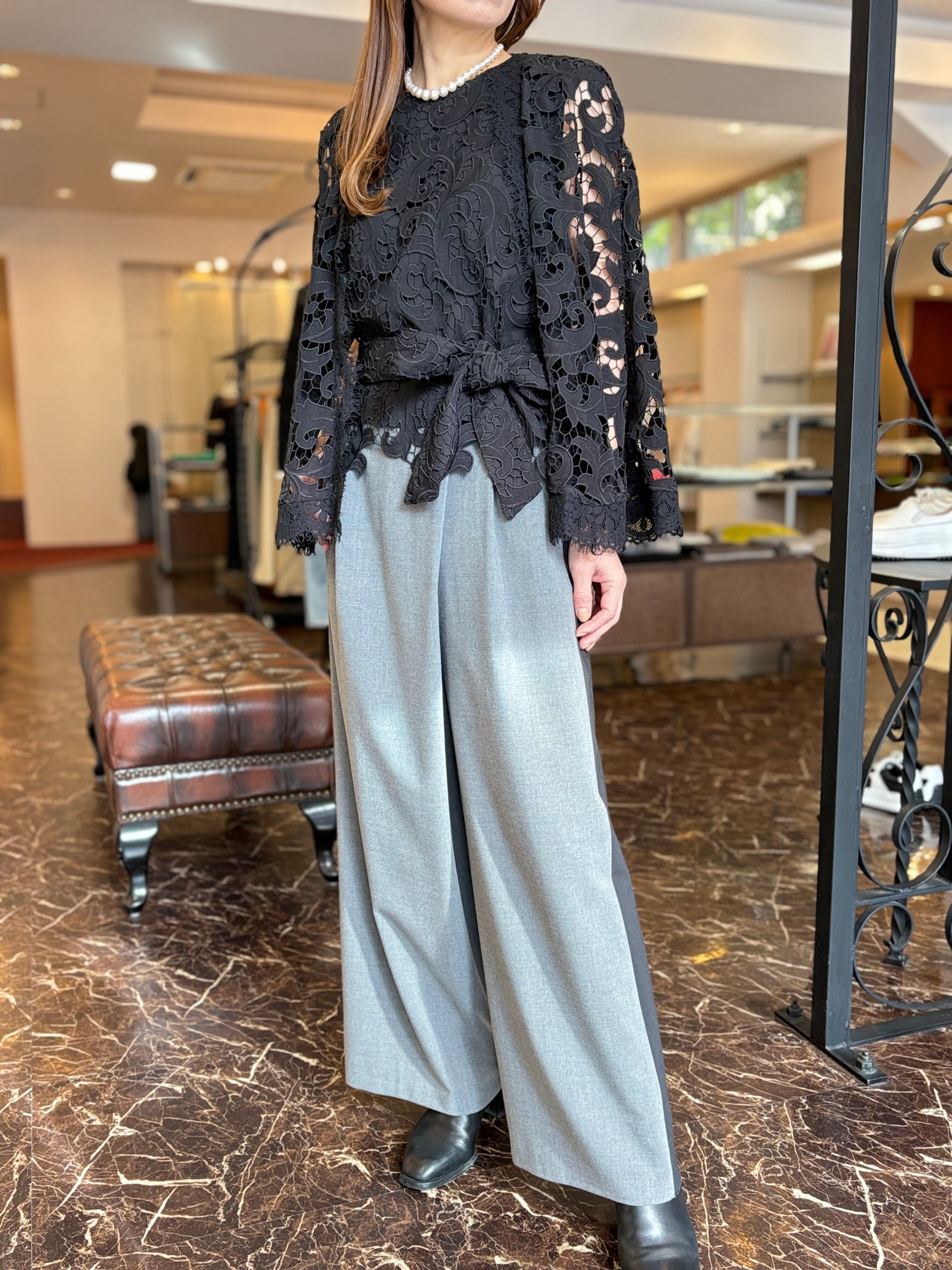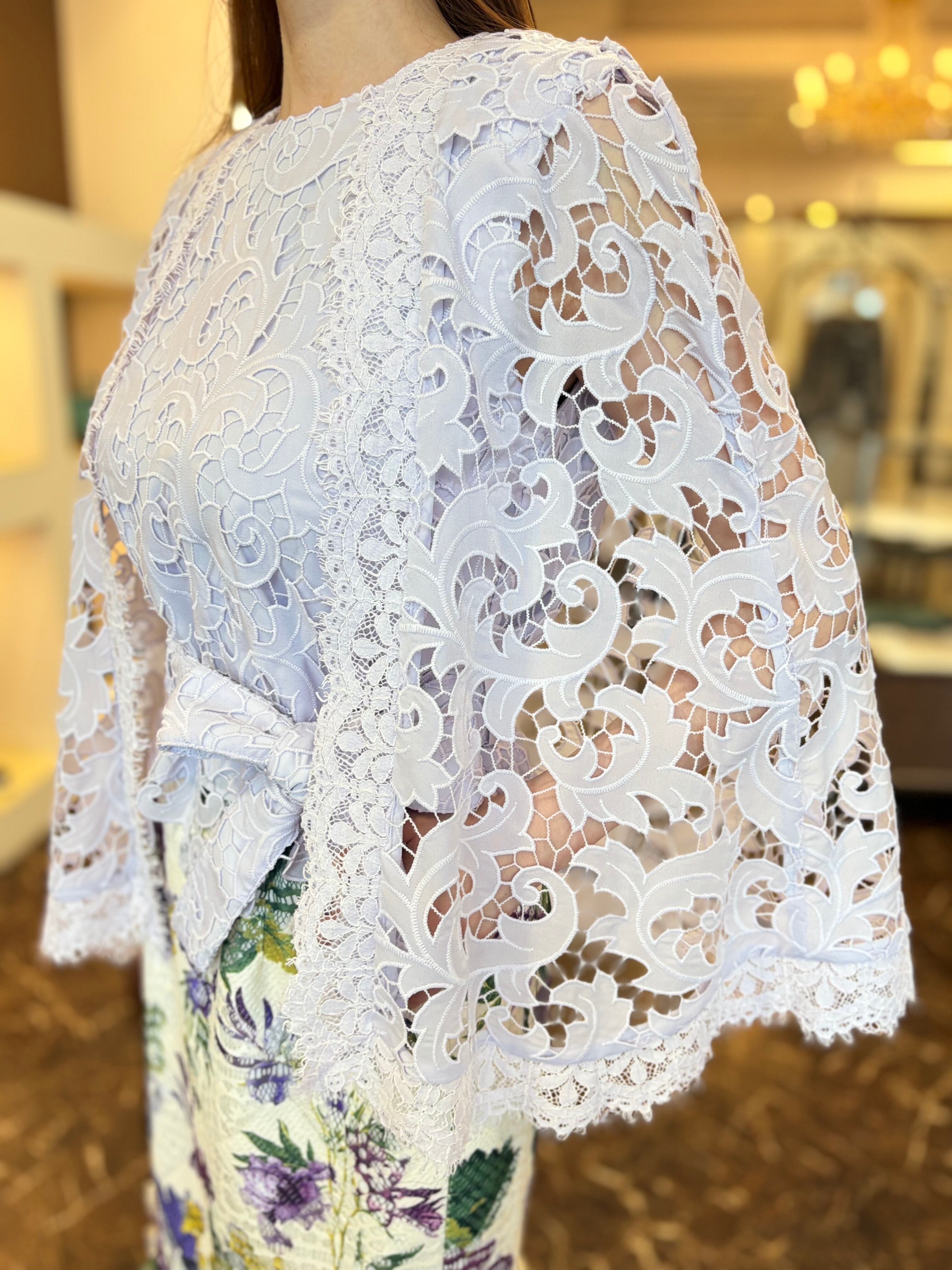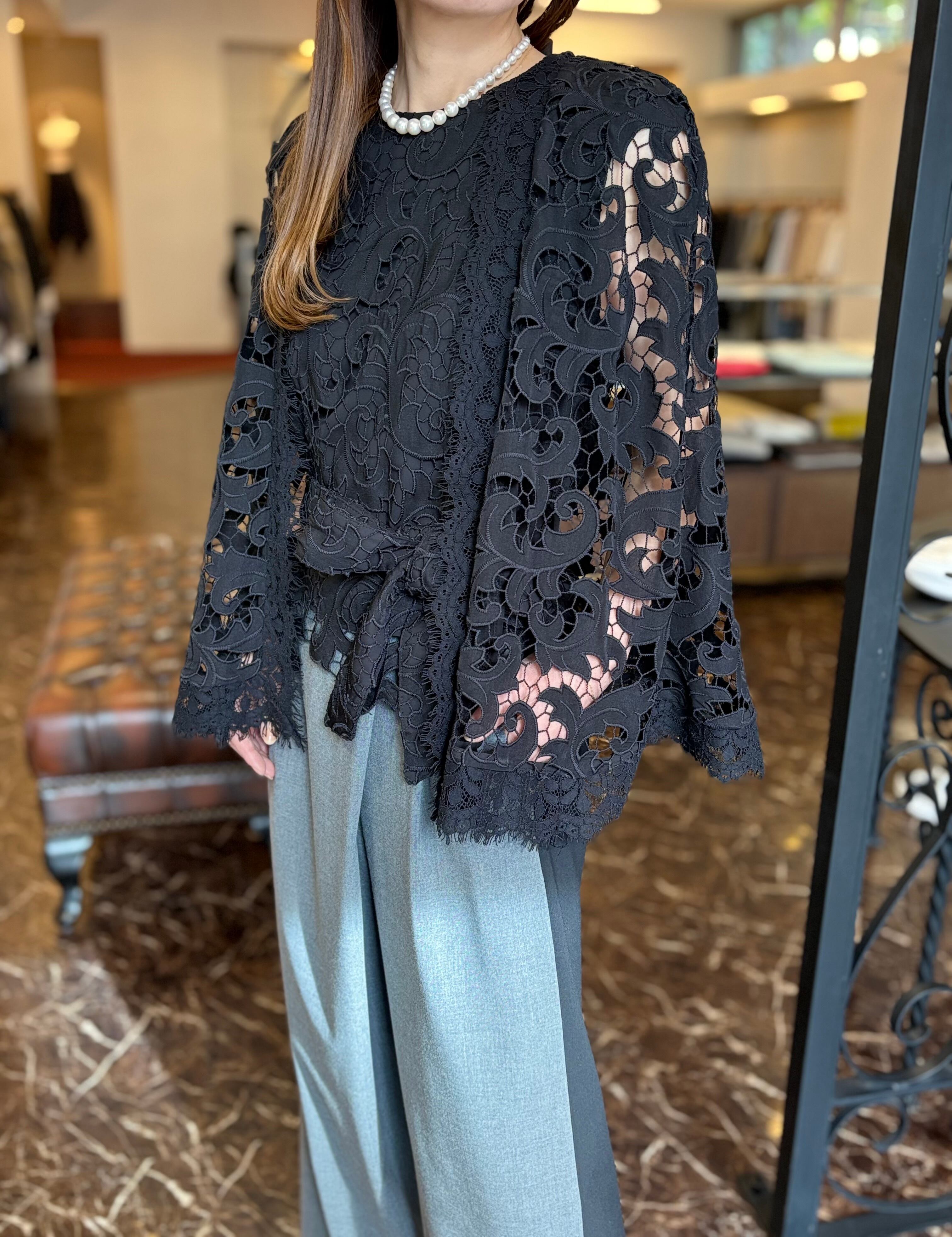 エンブロイダリーレースが美しい、エレガントな1着です。