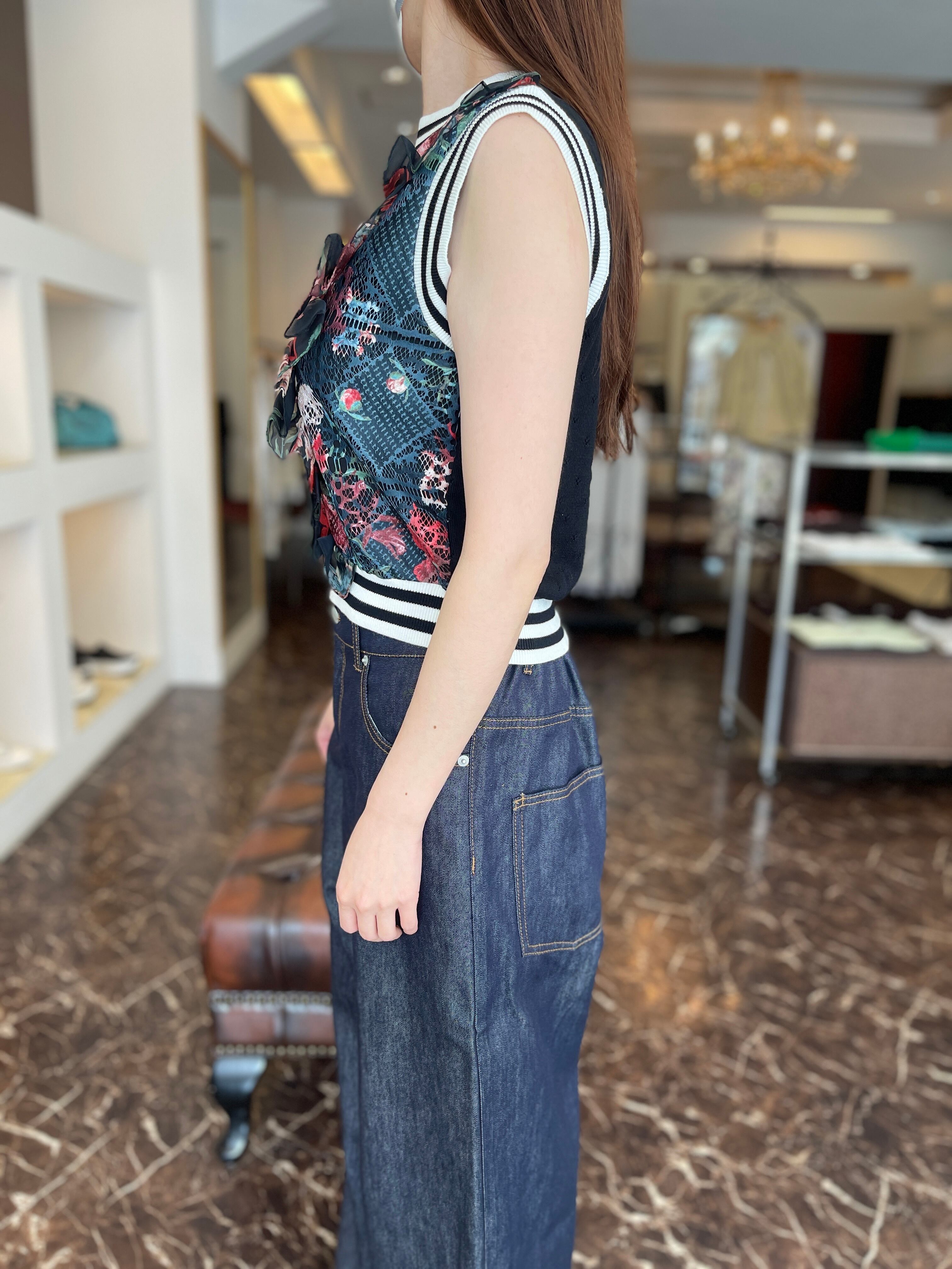 ブーケプリントラッフルレースニット