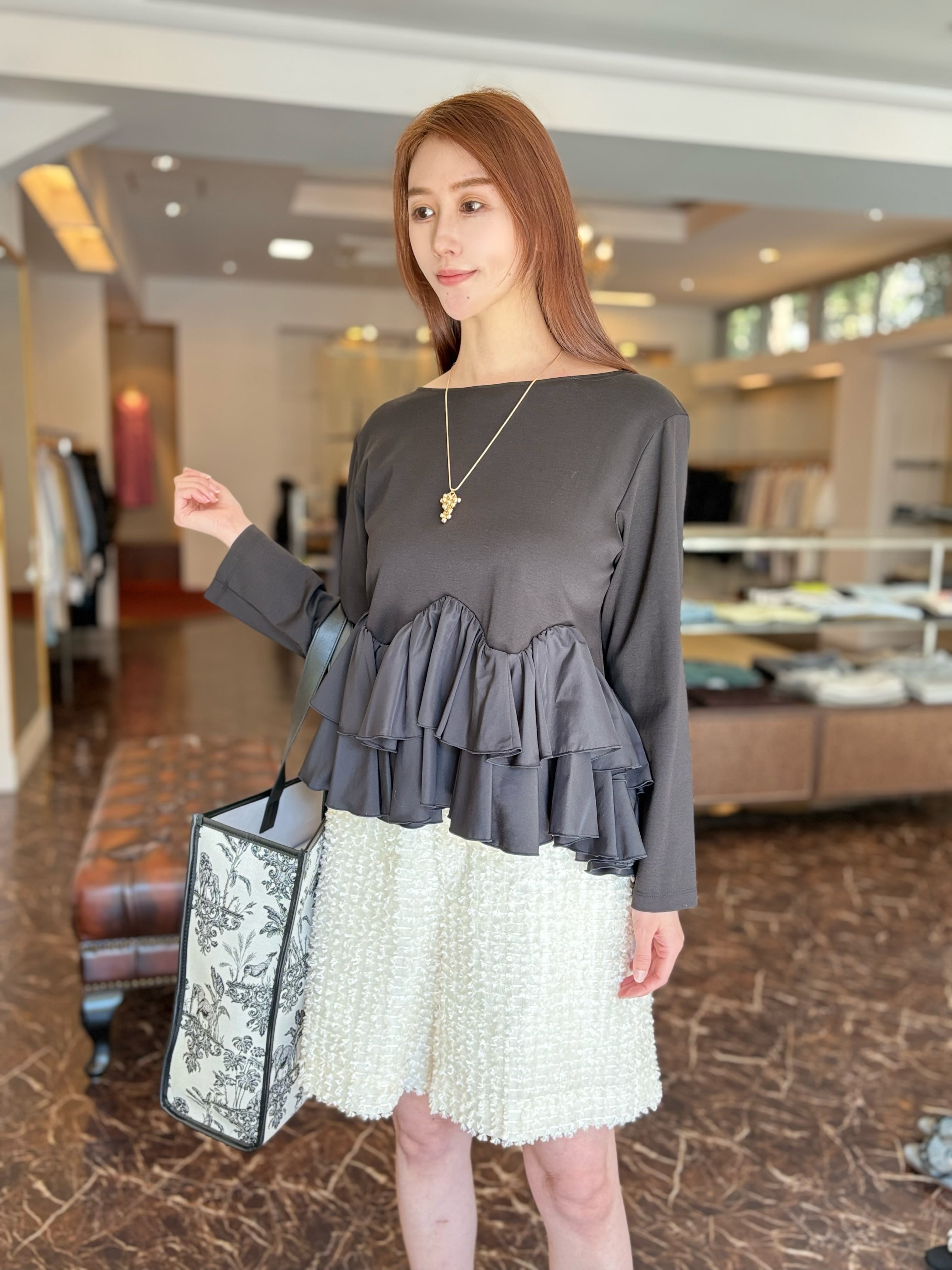 やや長めの着丈や足幅に余裕をもたせたシルエットにする事で幼く見えず、大人の女性に似合うシルエットに仕上げています。