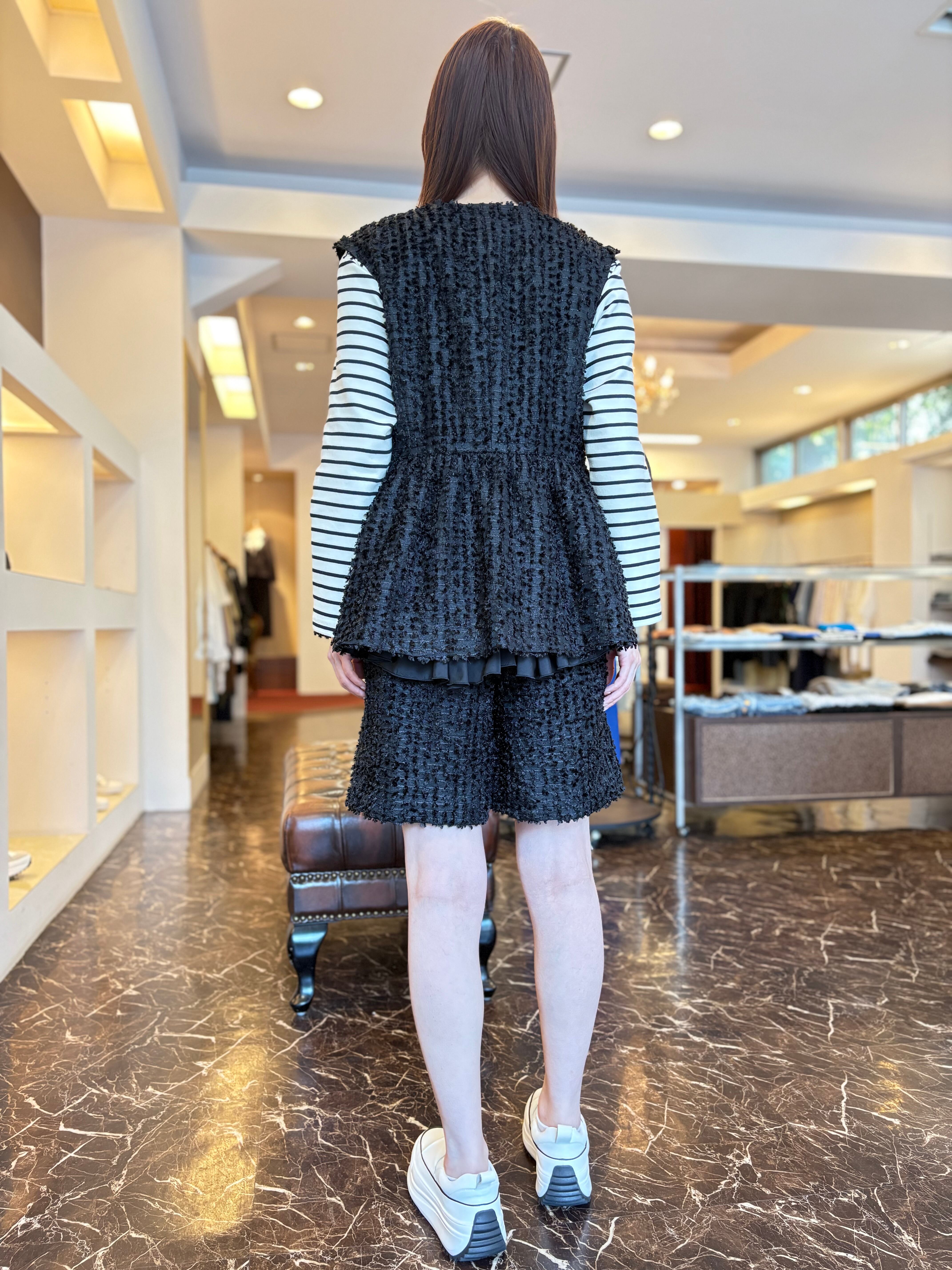 凹凸のある表情豊かな生地感によって、カジュアルなハーフパンツを上品な印象へと昇華しました。