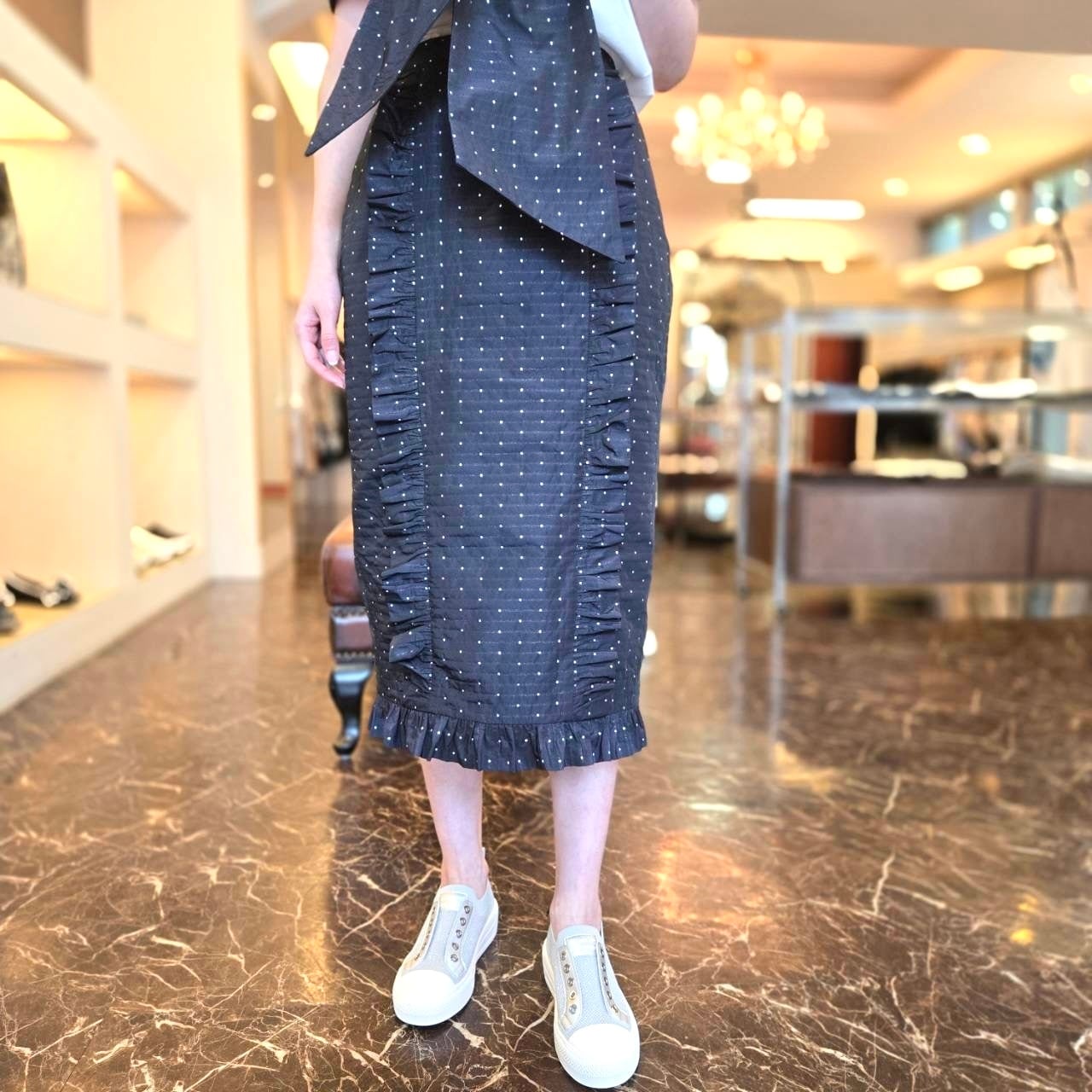 マイクロドットラッフルトリムスカート