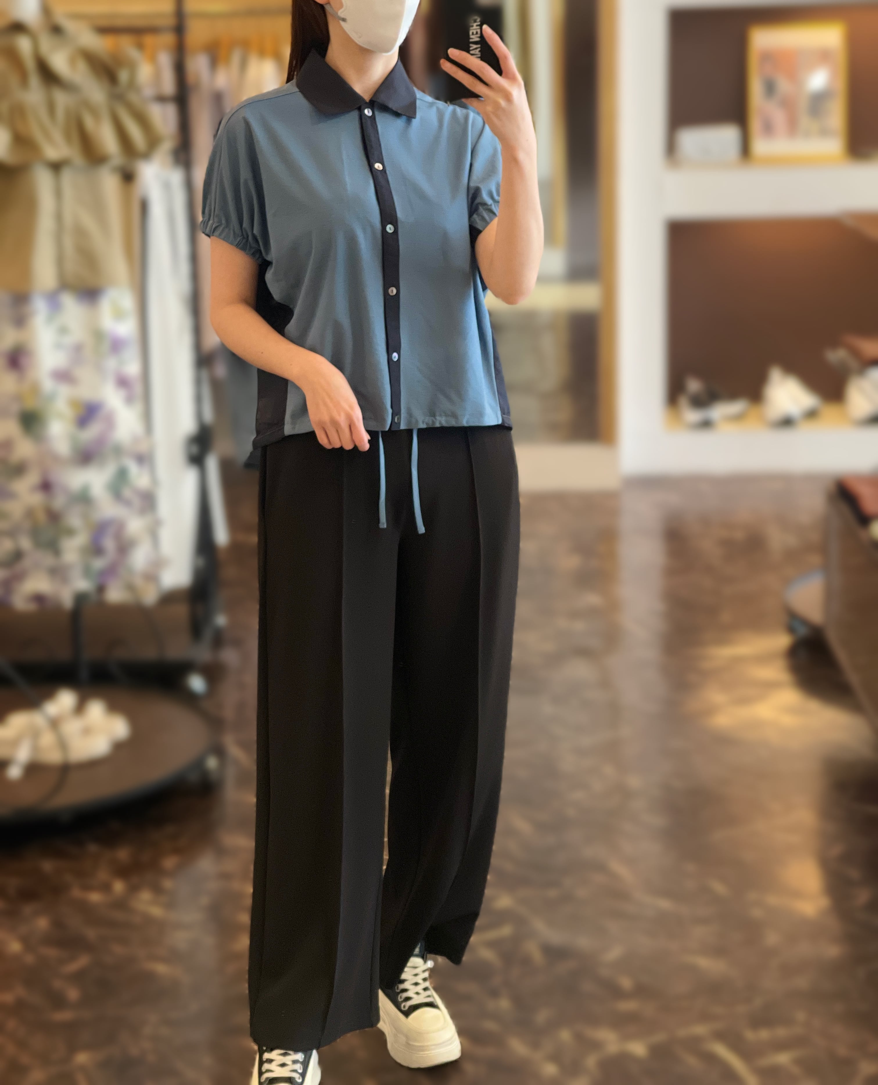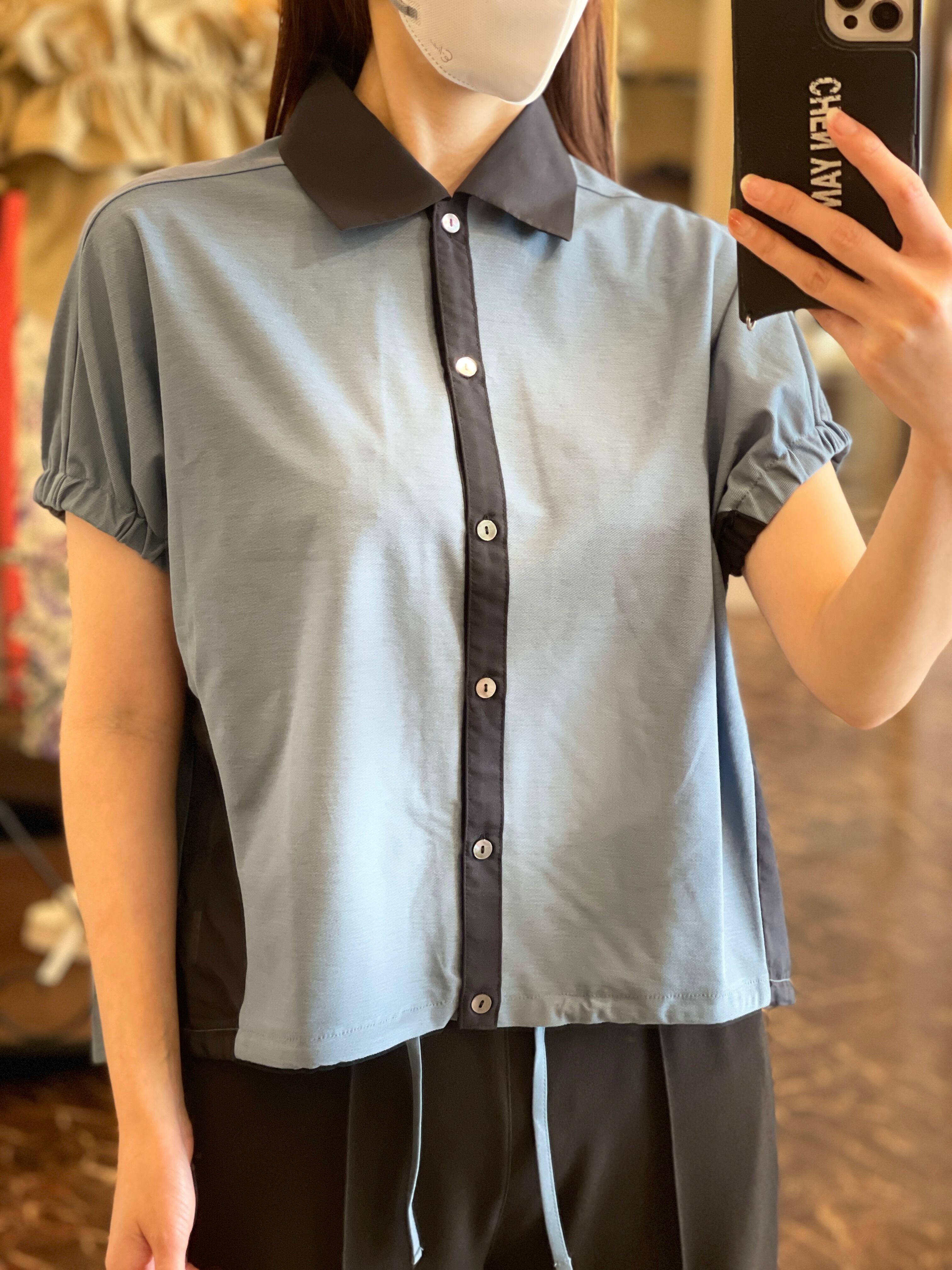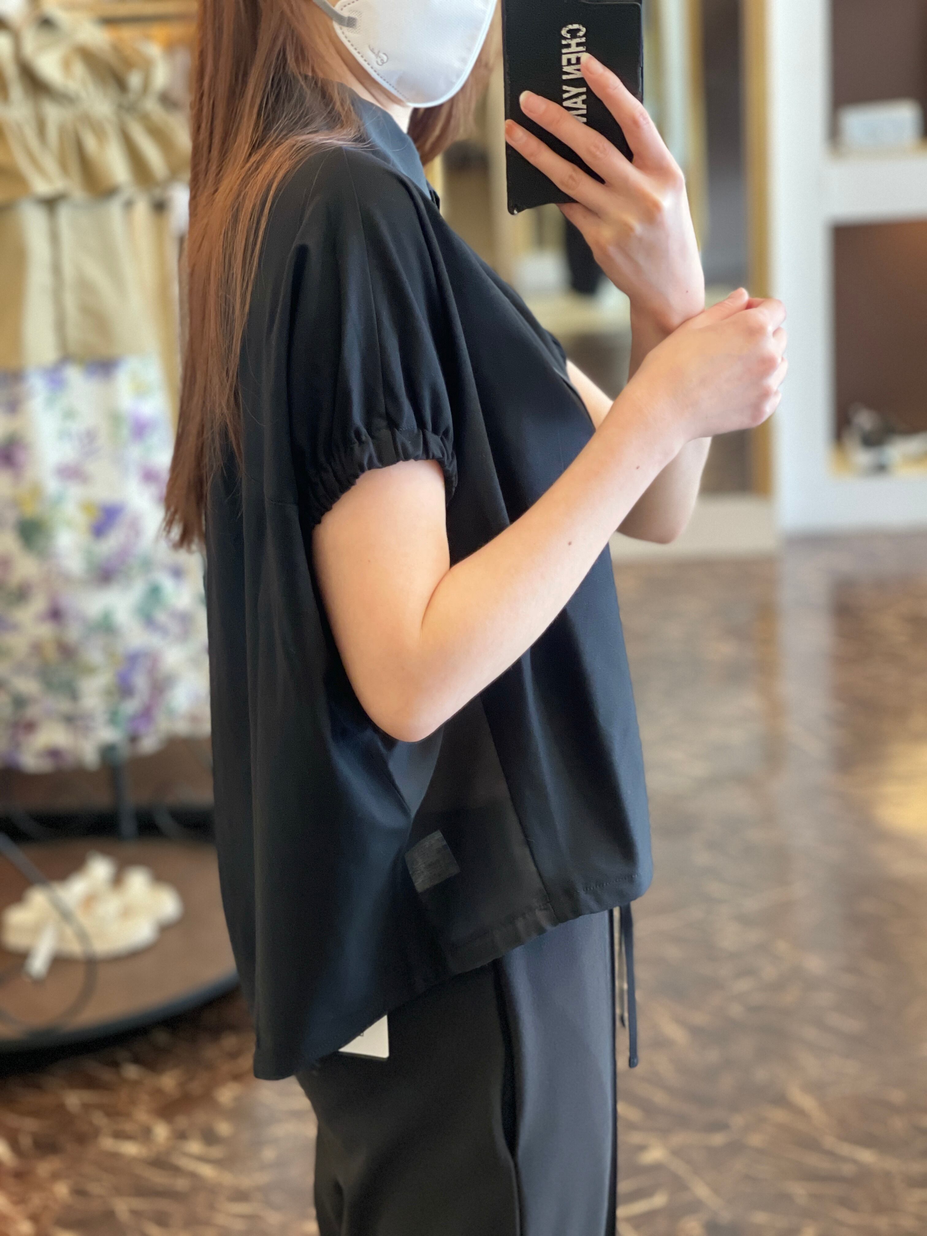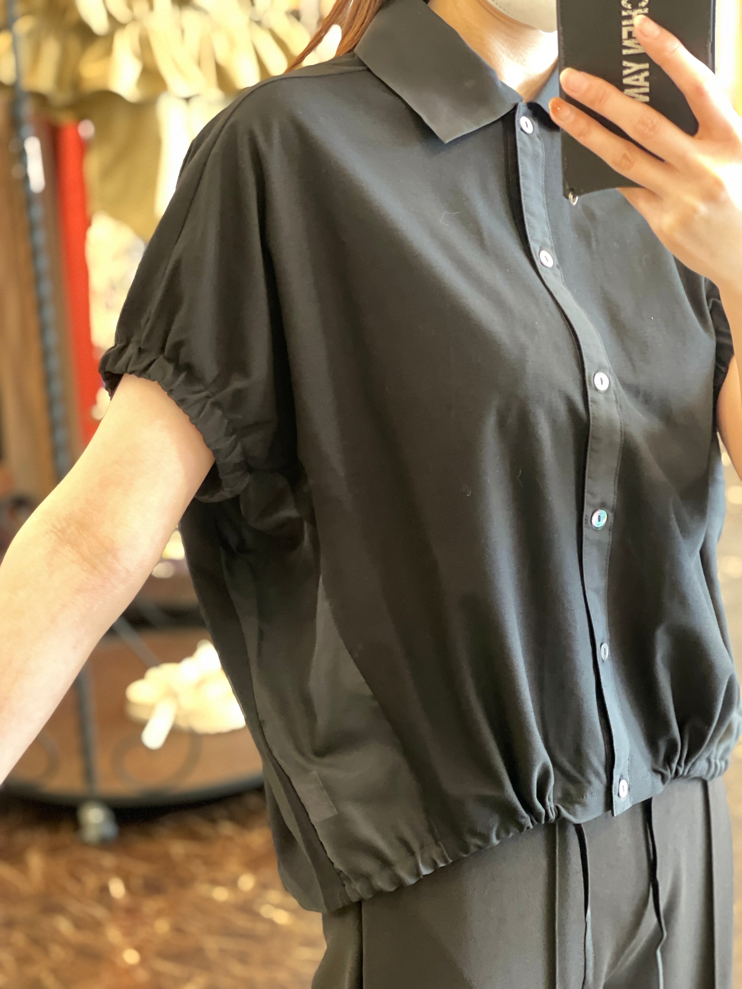袖口ギャザー裾絞りブラウス