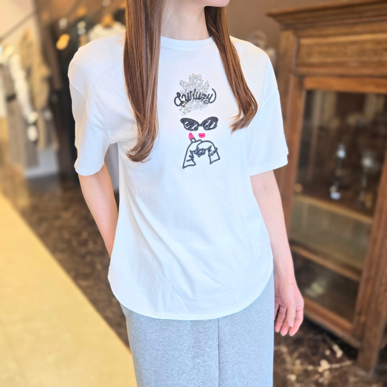 スパンコール刺繍半袖カットソー