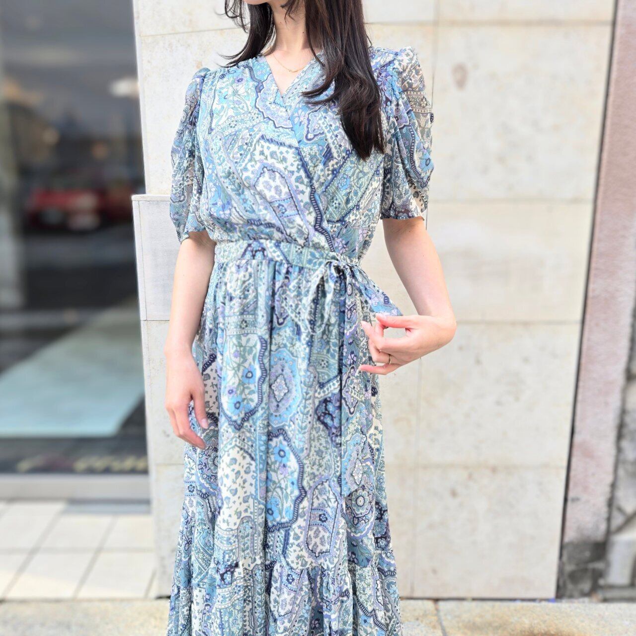 春夏気分を纏う、優しく柔らかなカラーが一際目を惹くカシュクールワンピース。