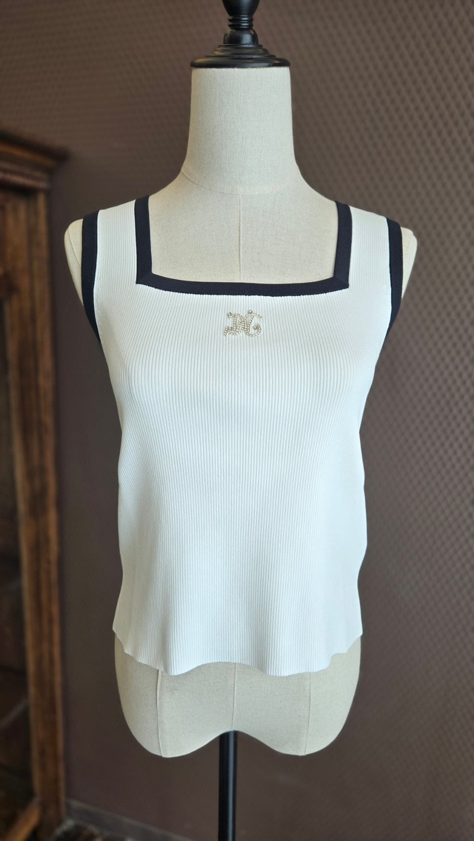 バイカラーリブニットノースリーブ