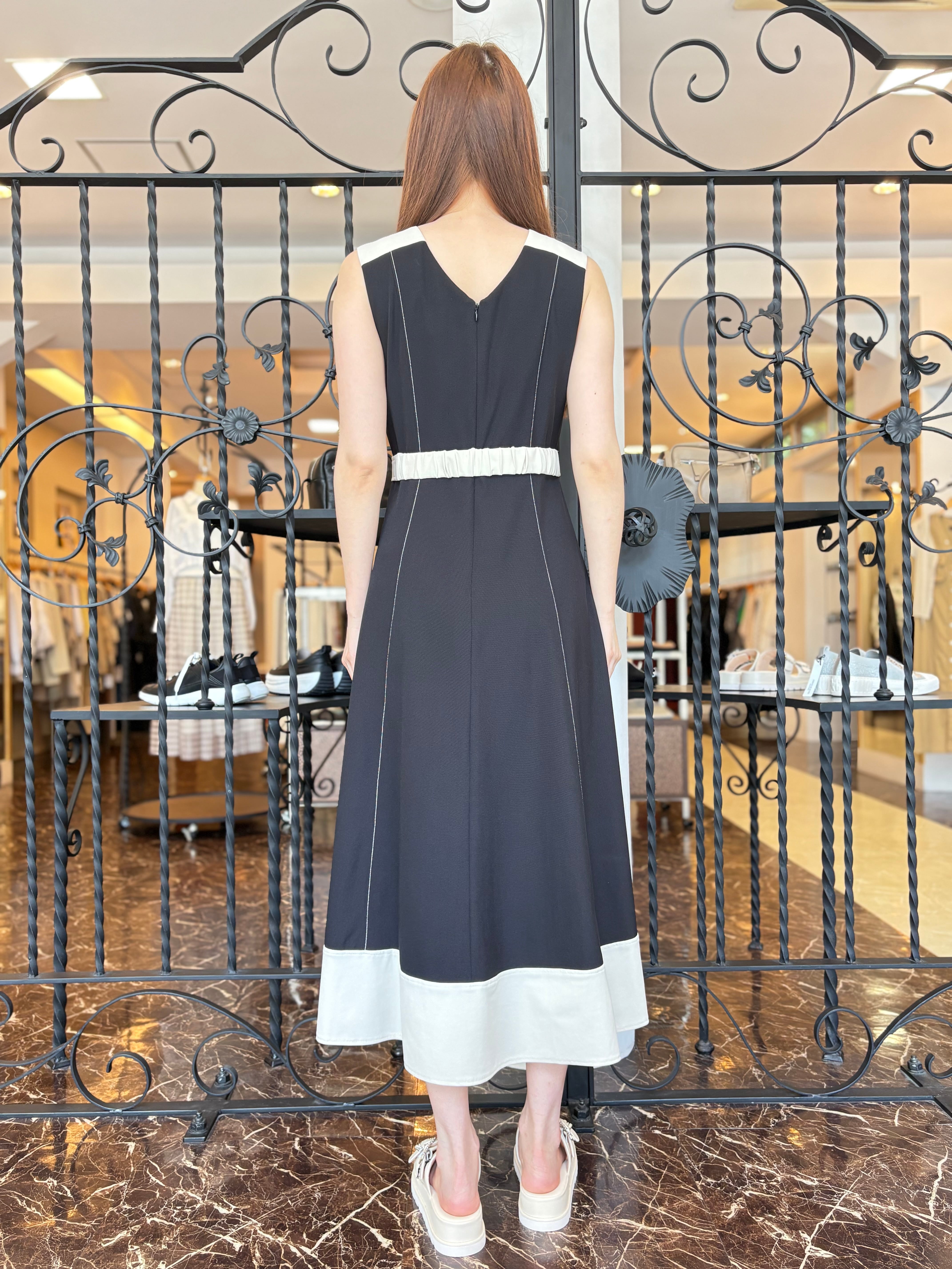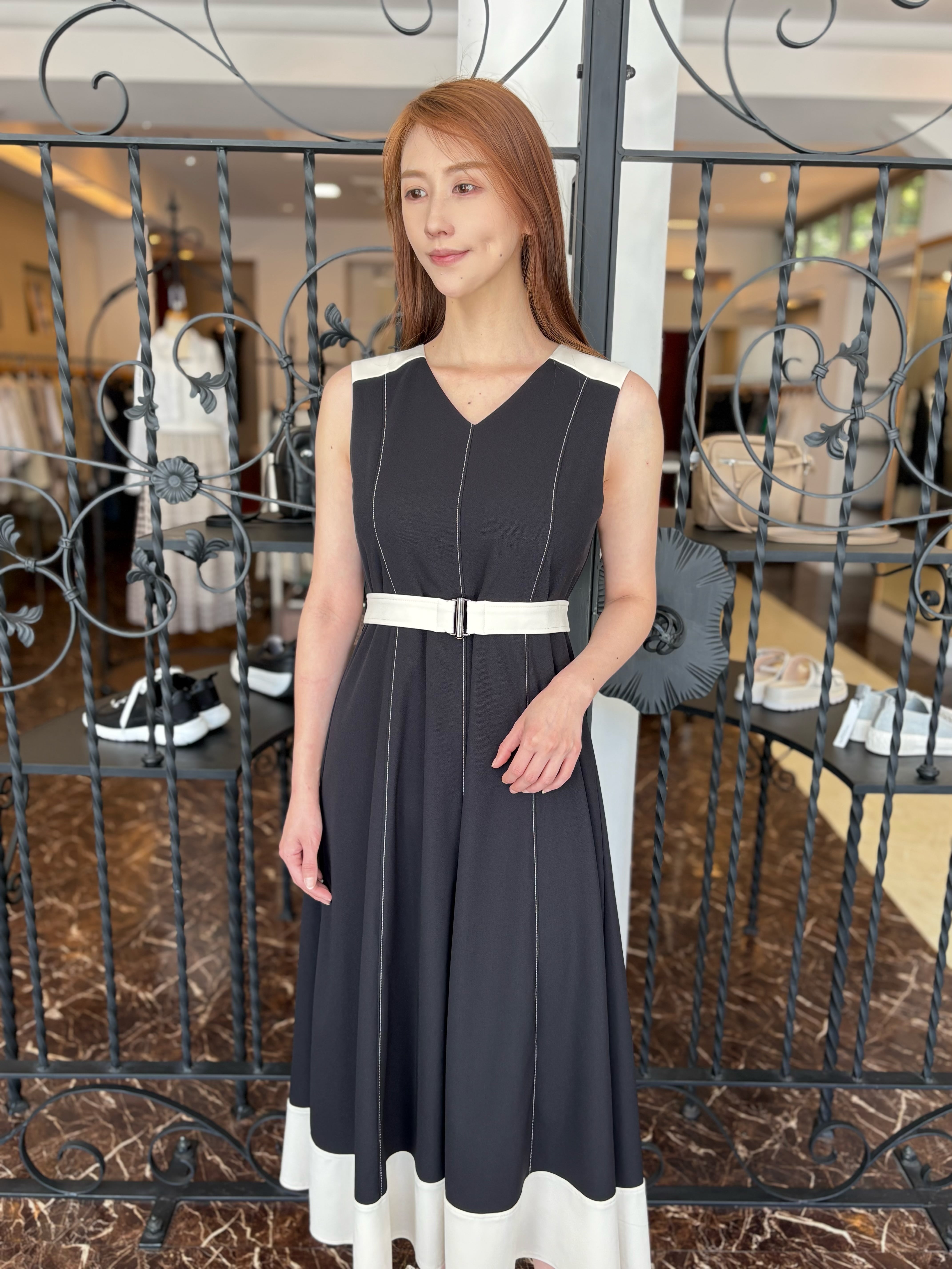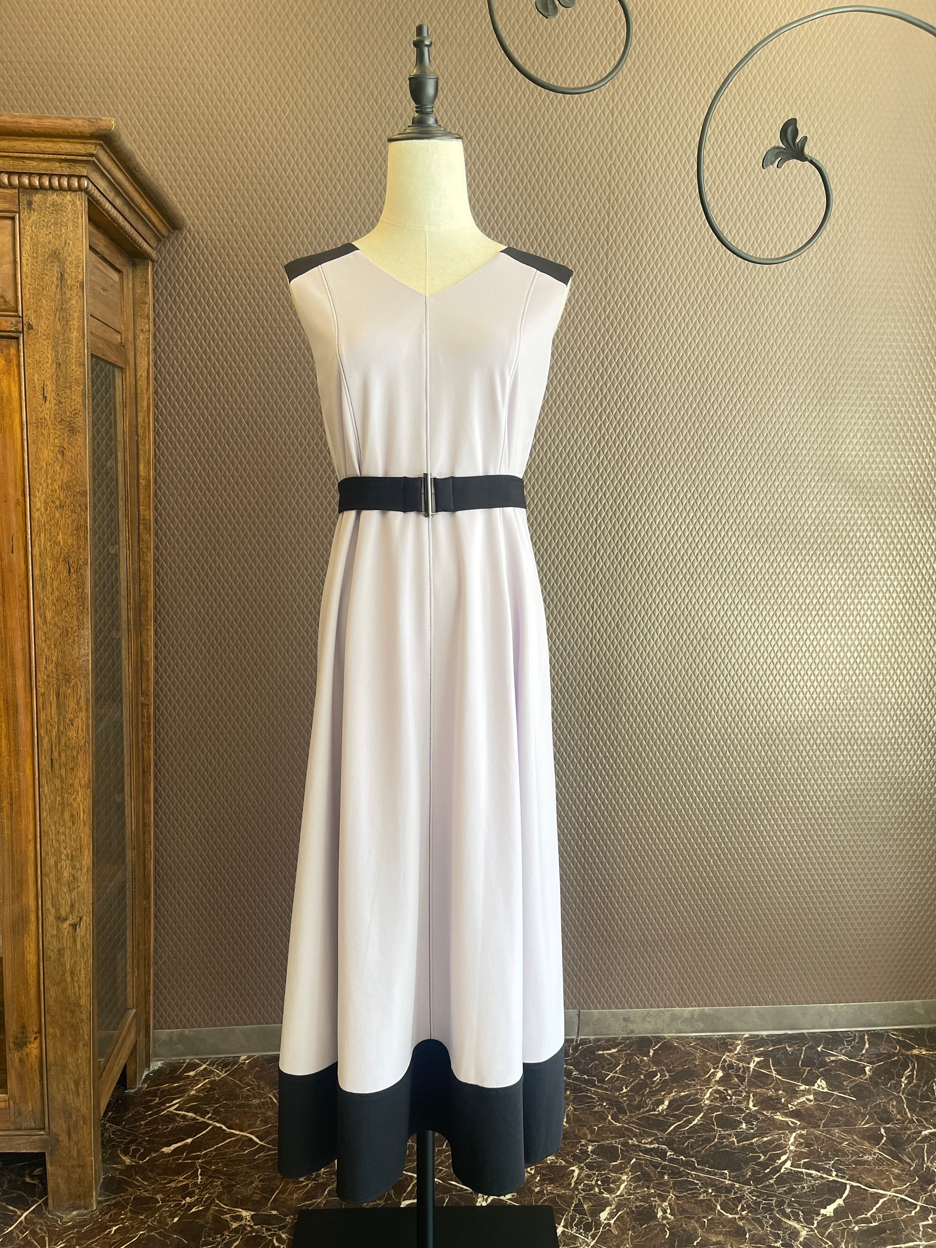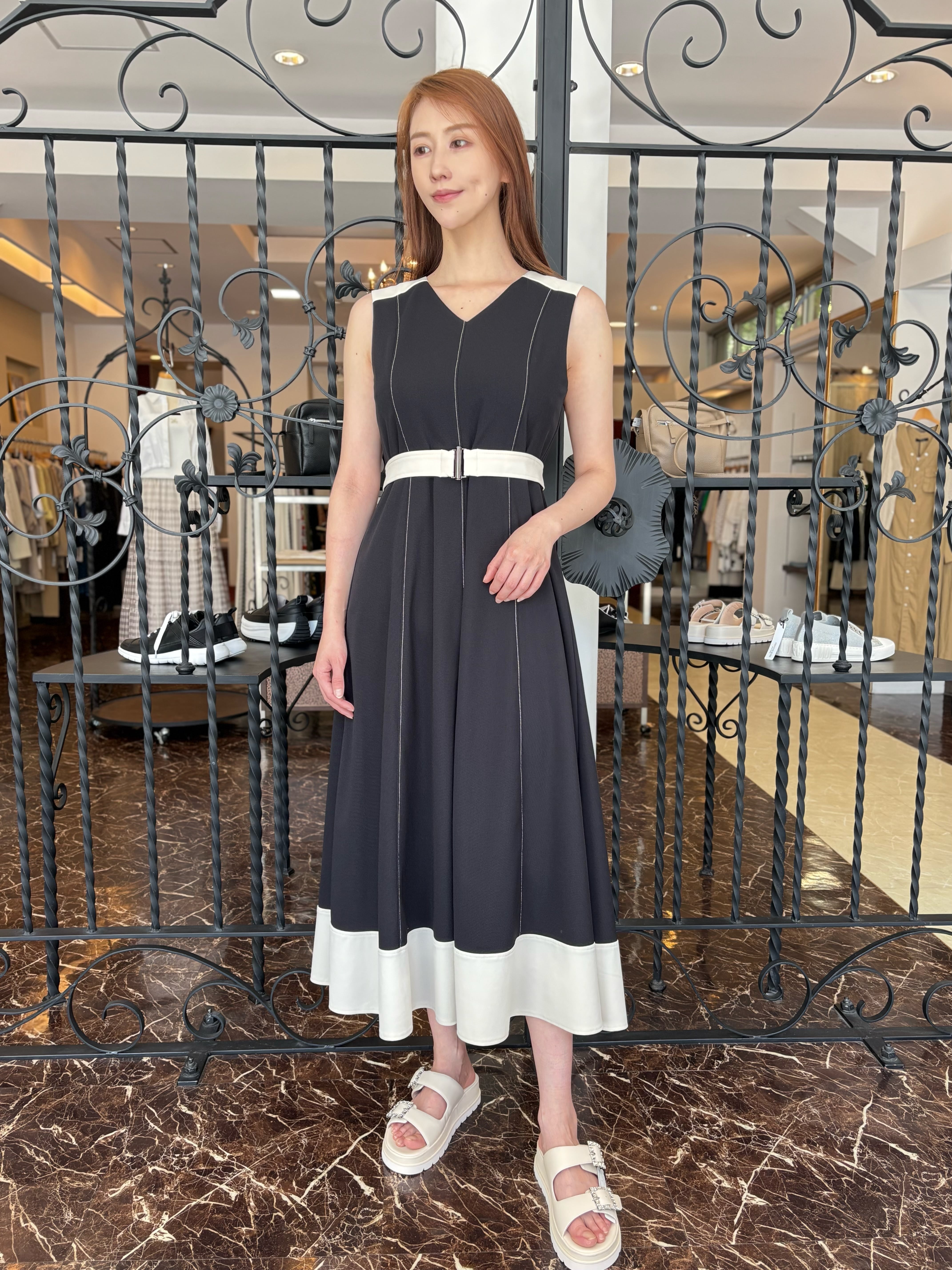 肩・ベルト・裾を配色にし全体を引き締めて、女性らしい洗練された雰囲気のあるデザインに仕上げました。