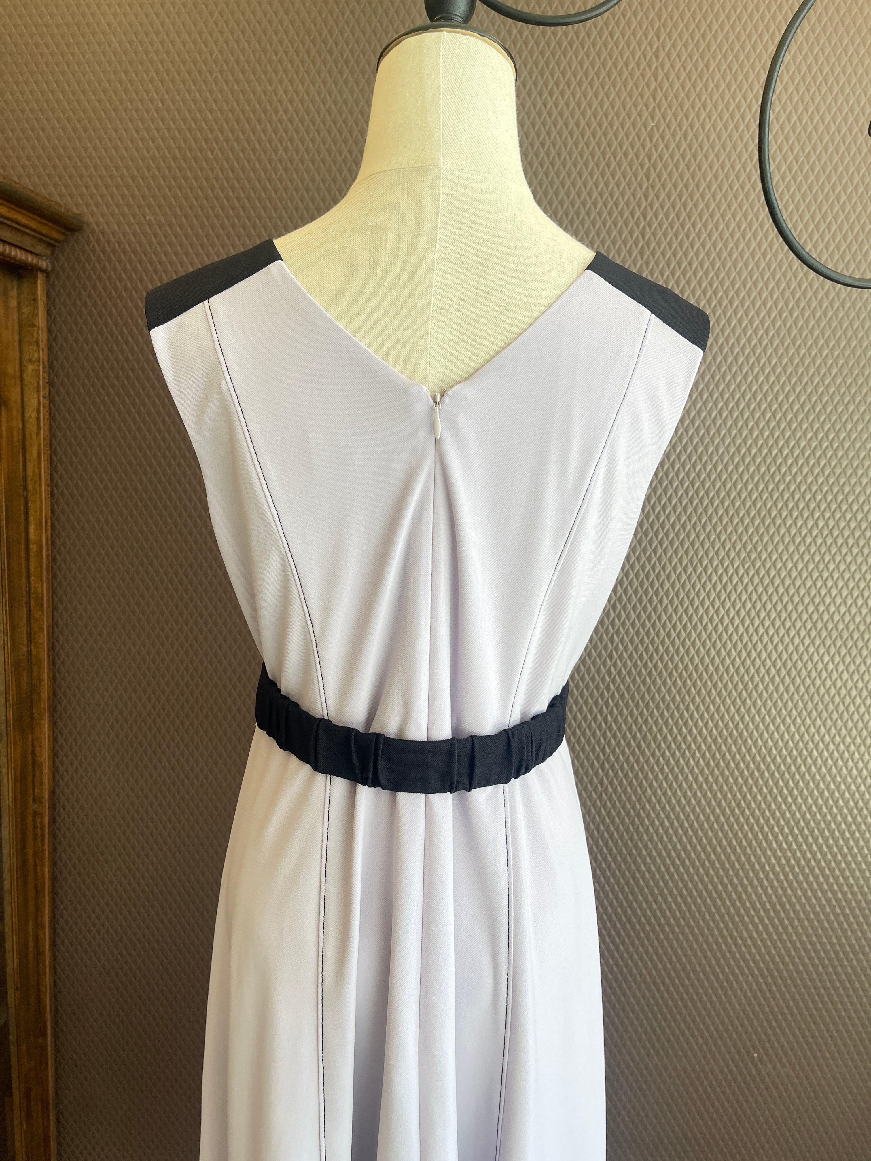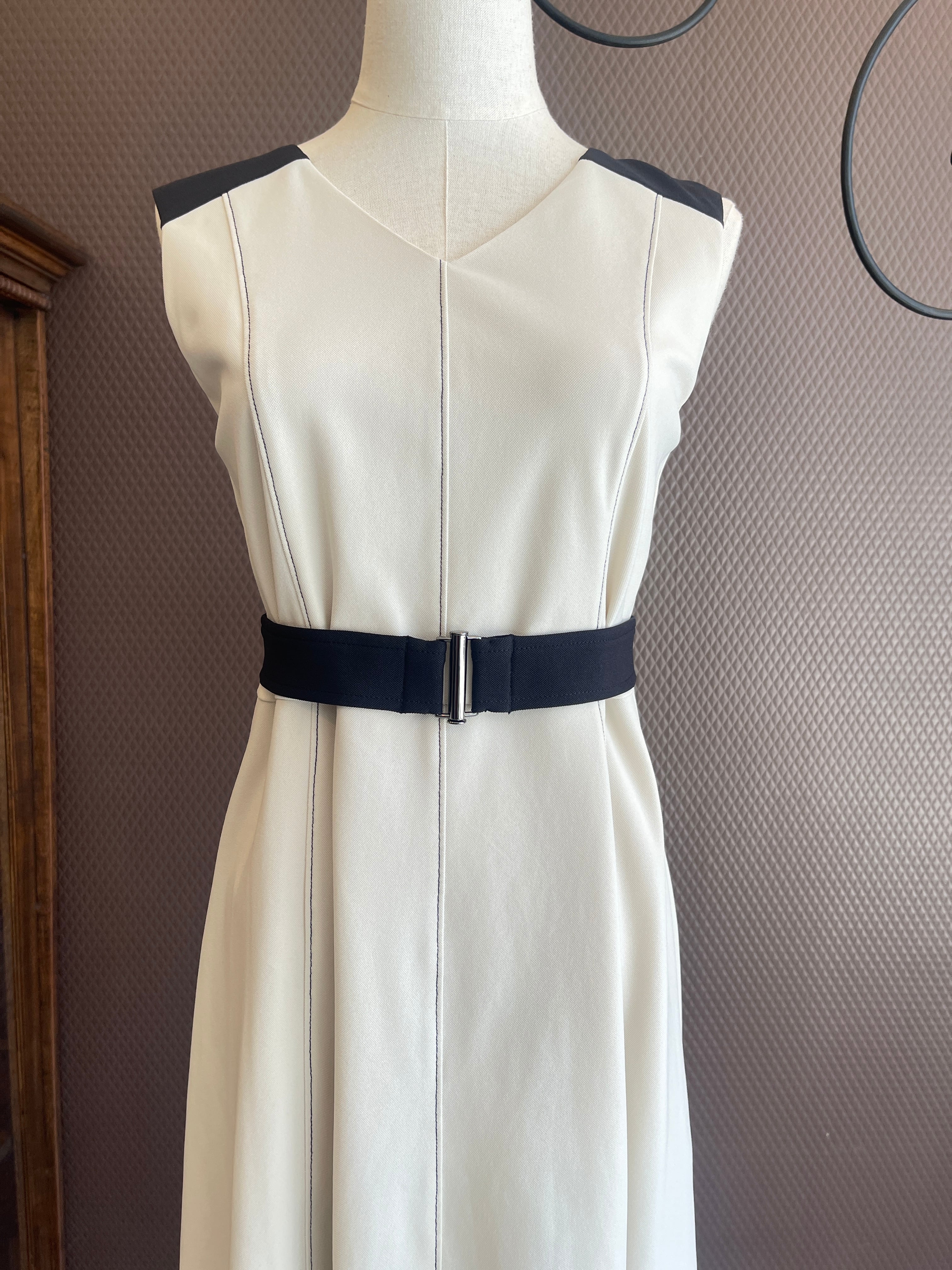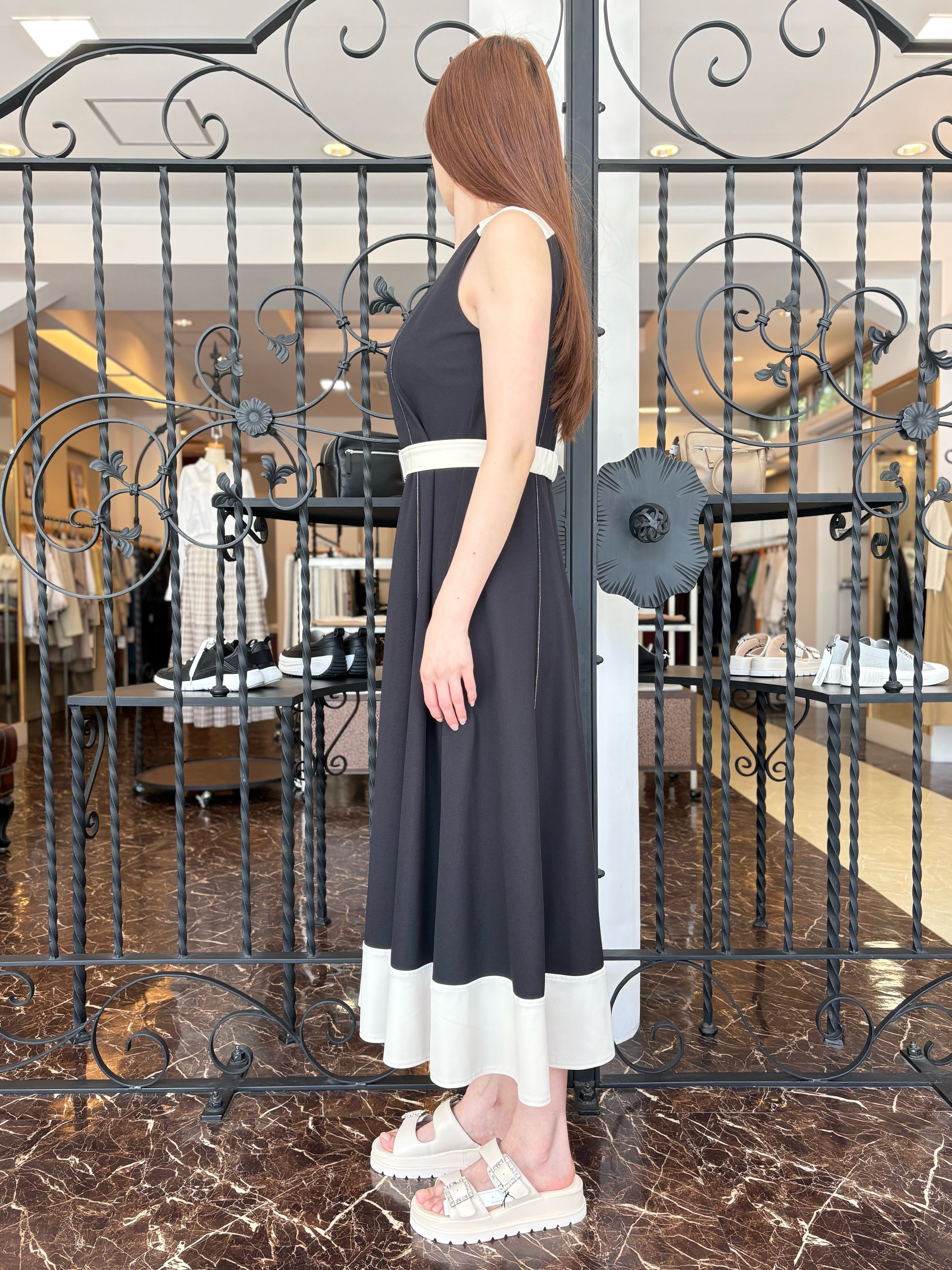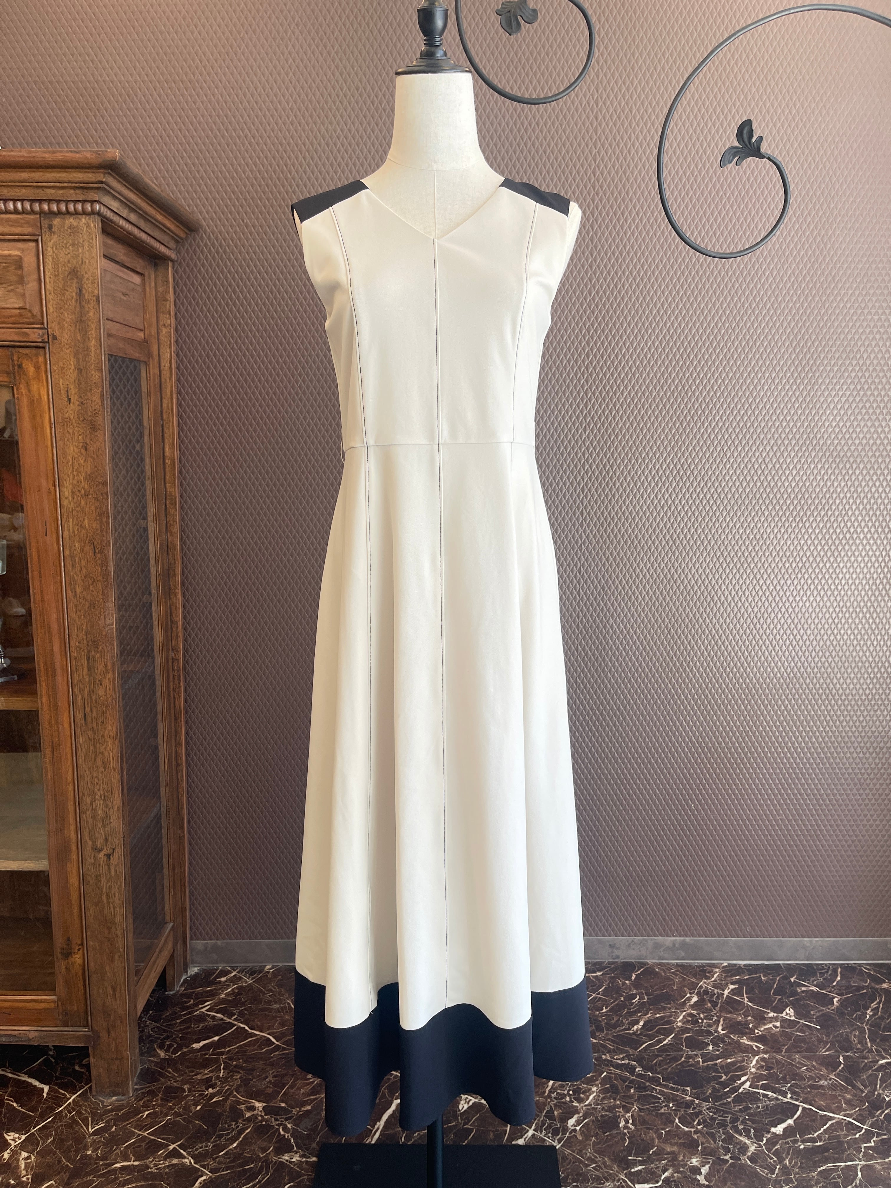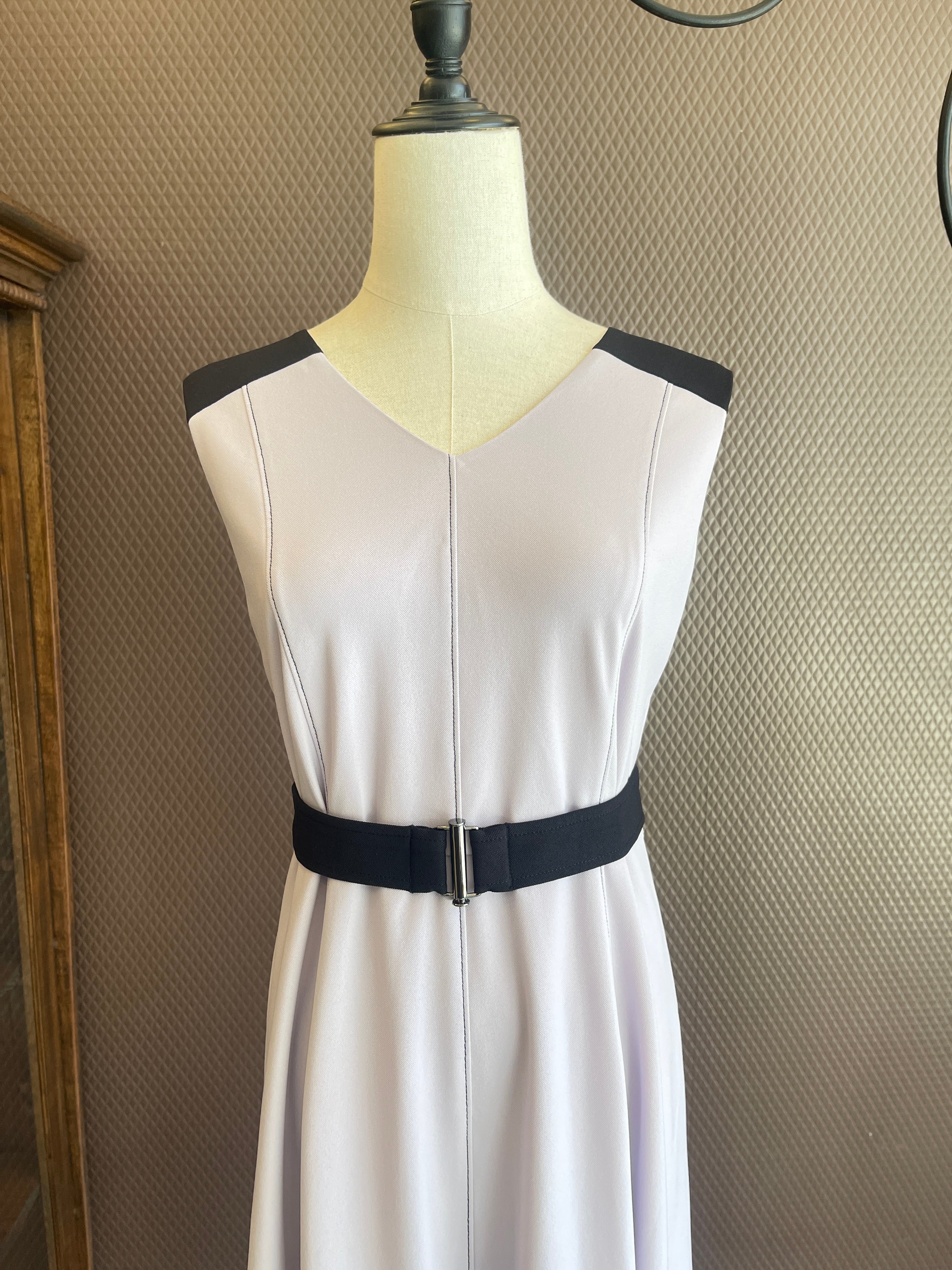 肩・ベルト・裾を配色にし全体を引き締めて、女性らしい洗練された雰囲気のあるデザインに仕上げました。