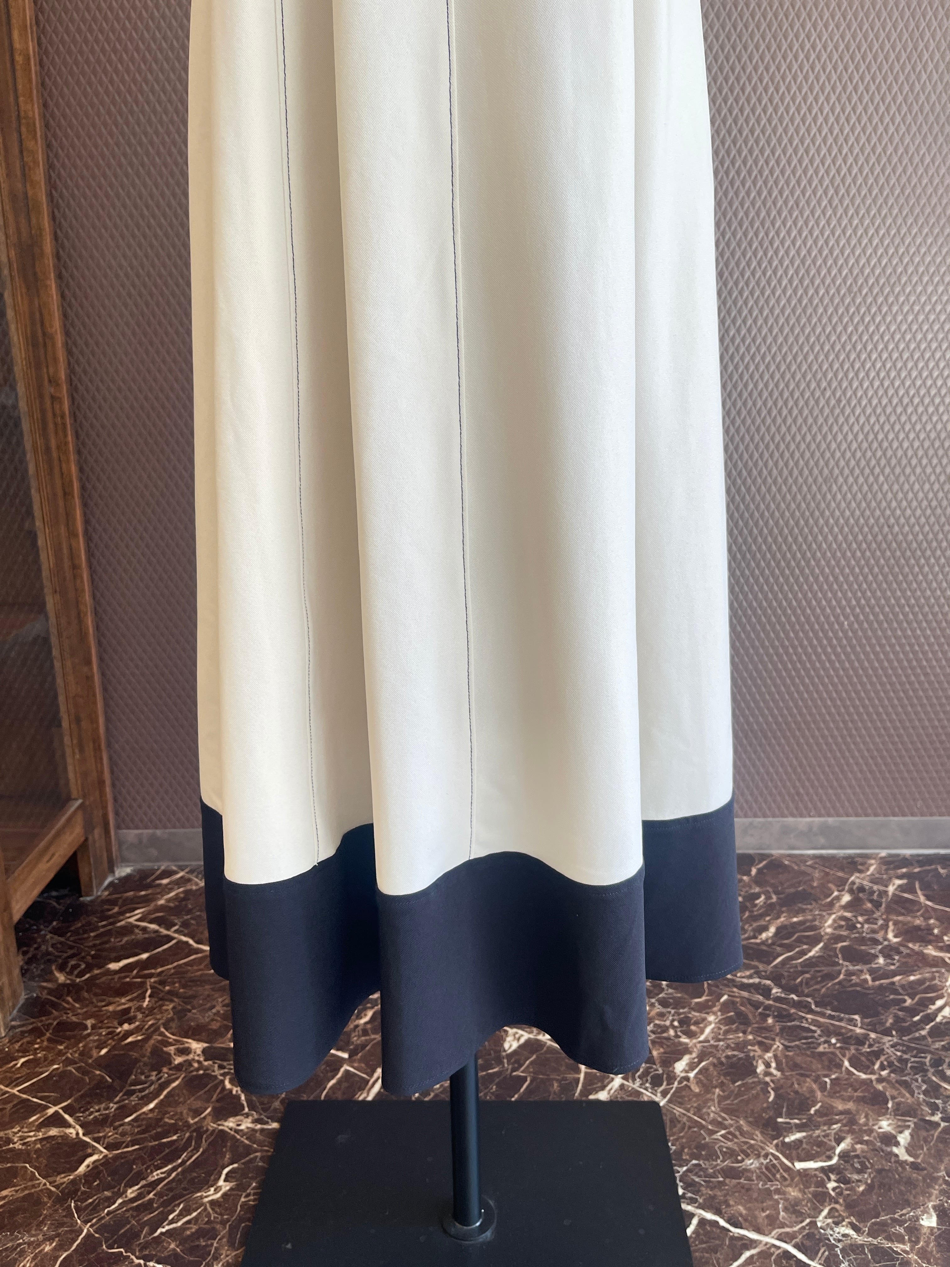 薄くてハリのある生地を使用することで、フィット&フレアのシルエットがより綺麗に出るよう表現しました。
